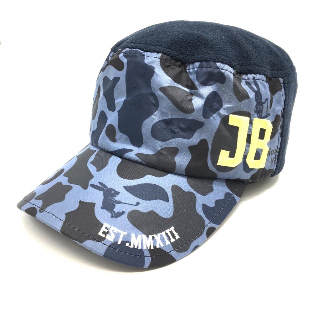 【超美品】カッパ ワークキャップ 黒 カモフラ柄地模様 迷彩 内側起毛 フリーサイズF ゴルフウェア Kappa