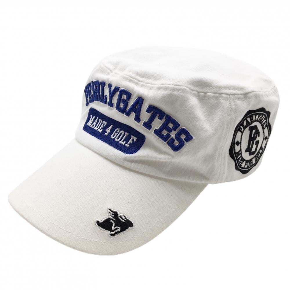 【美品】パーリーゲイツ ワークキャップ 白×レッド コットン100% M ゴルフウェア PEARLY GATES