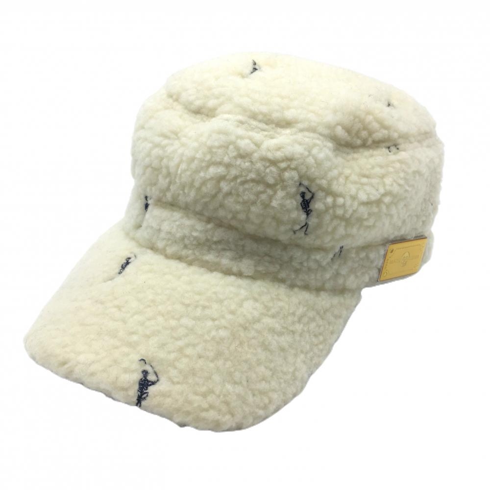 マンシングウェア ファーワークキャップ 白×ブラウン ロゴワッペン ウール混 F(55-59cm) ゴルフウェア Munsingwear