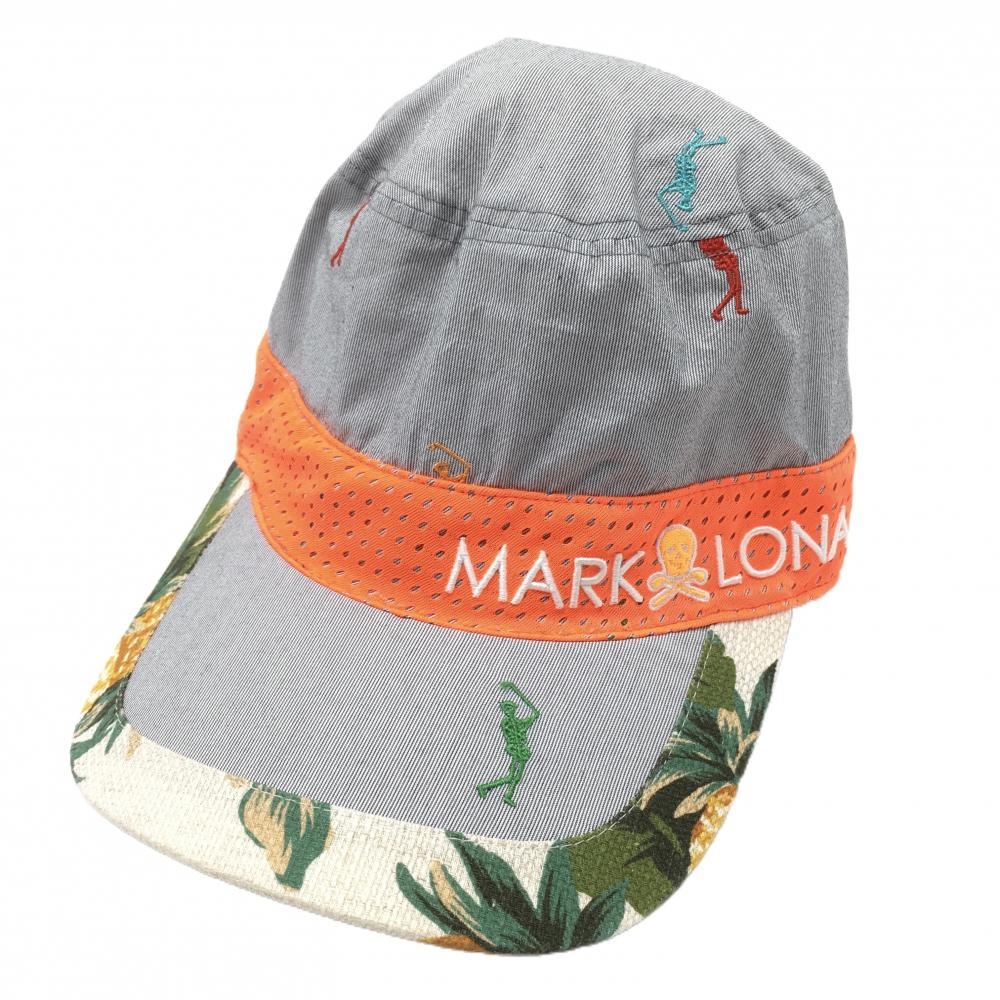 【美品】マークアンドロナ ワークキャップ 杢ネイビー系×蛍光オレンジ×マルチ レディース S ゴルフウェア MARK&LONA