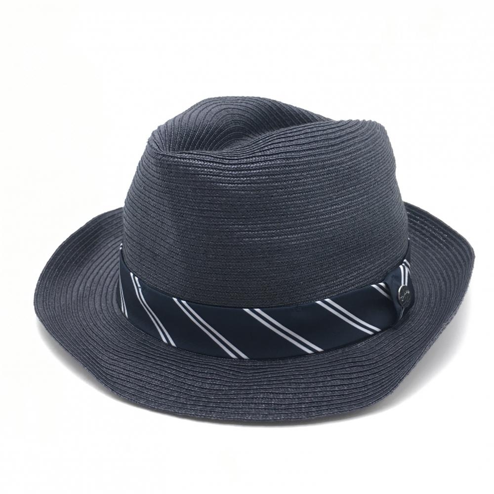 【美品】ゾーイ 中折れハット ネイビー×白 ストライプ調 F ゴルフウェア ZOY