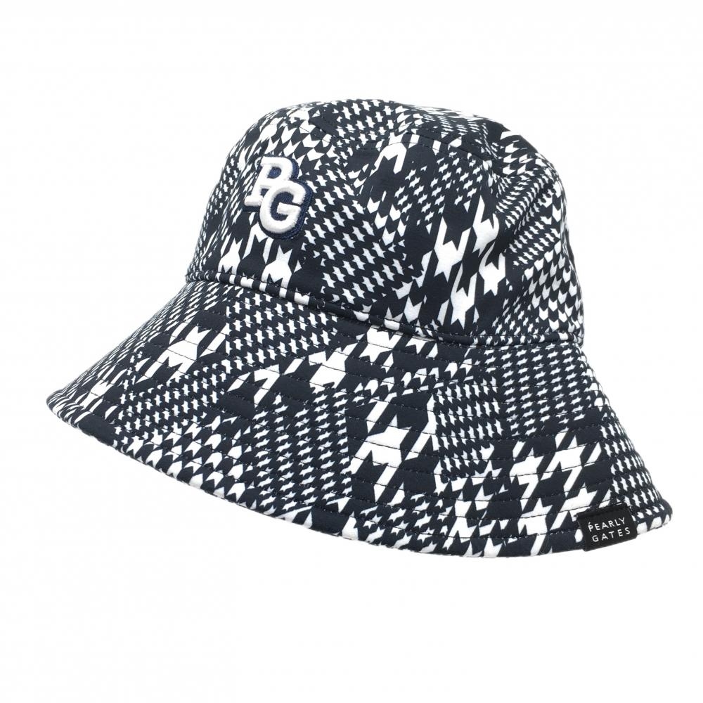 【超美品】パーリーゲイツ バケットハット ネイビー×白 織生地 ロゴ刺しゅう 凹凸 FR ゴルフウェア 2023年モデル PEARLY GATES