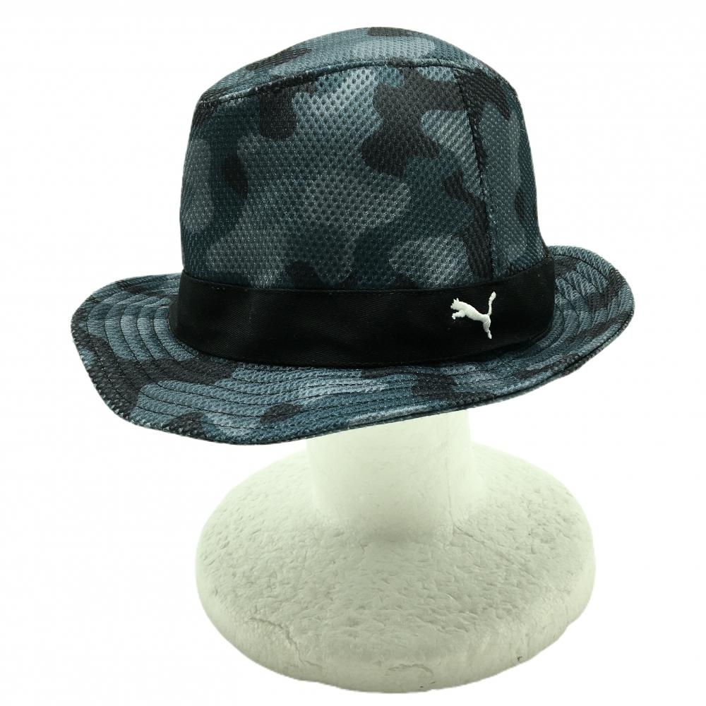 【超美品】マンシングウェア 中折れハット ネイビー×グレー サイドロゴ レディース F(55-57cm) ゴルフウェア Munsingwear