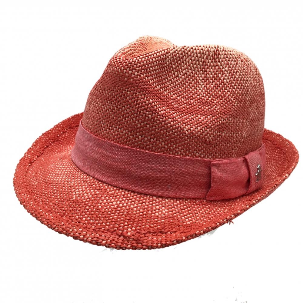 【美品】パーリーゲイツ ハット ネイビー×オレンジ 麦わら リボン FR ゴルフウェア PEARLY GATES
