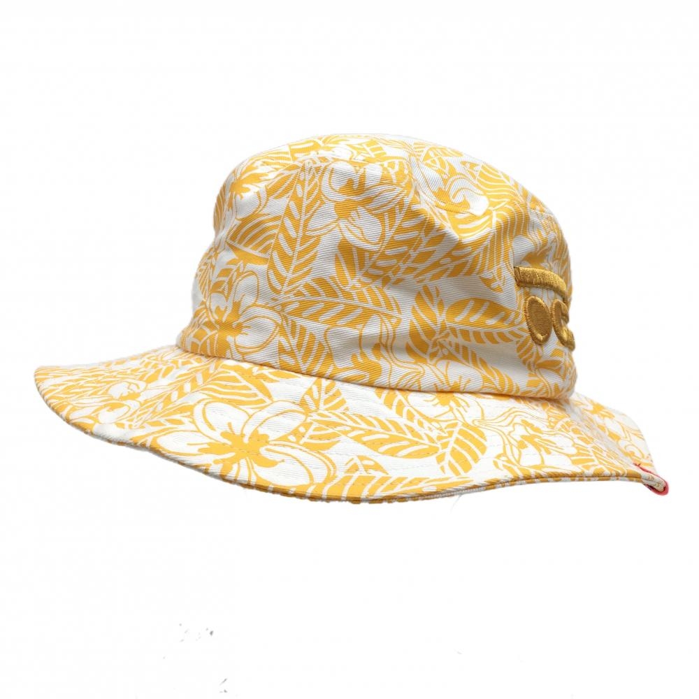 【超美品】ワック ハット ベージュ×グリーン 花柄 紐着脱可 韓国モデル 57cm ゴルフウェア WAAC