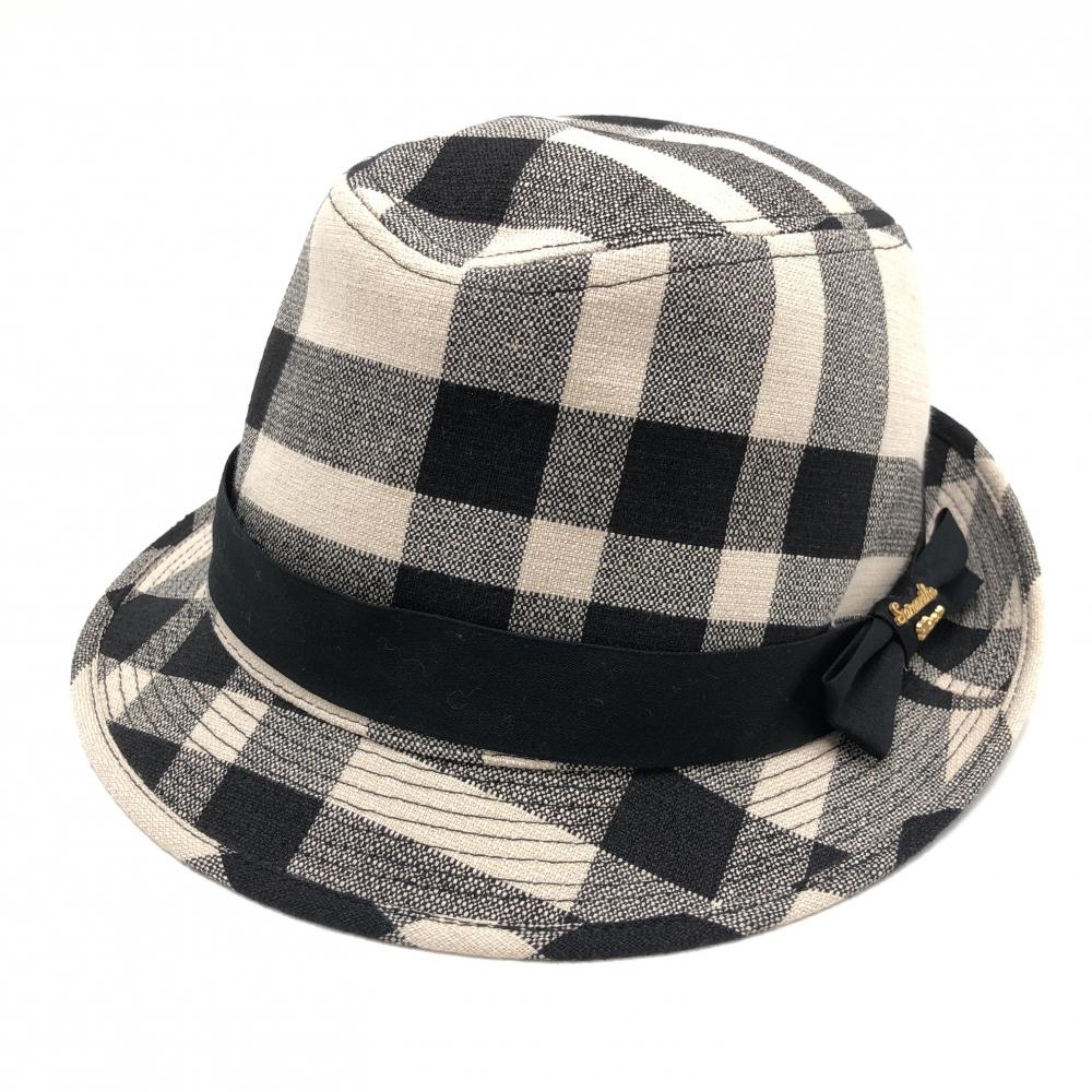 【美品】サマンサタバサNo.7 中折れハット 黒×白 チェック リボンイエロー レディース F ゴルフウェア Samantha Thavasa