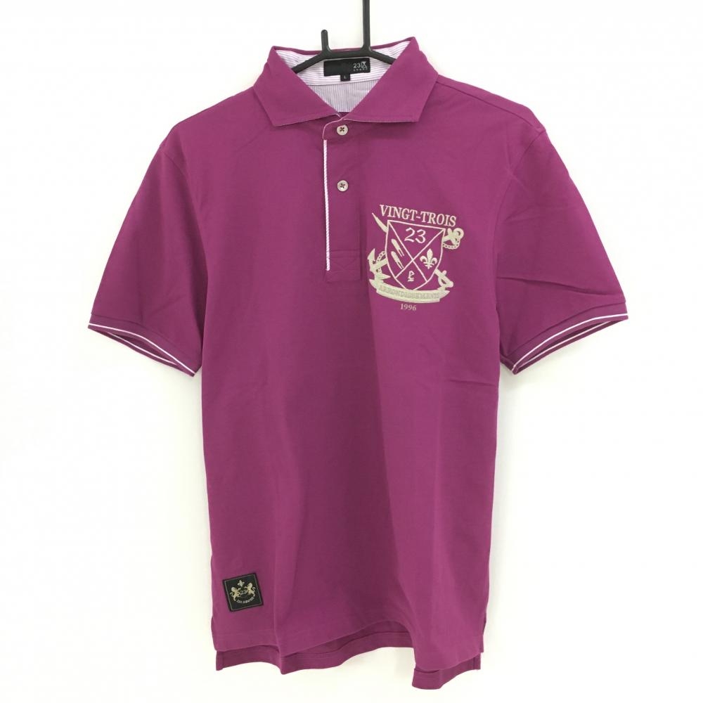 【超美品】プリングル 半袖ポロシャツ パープル ロゴ刺しゅう コットン100% メンズ S ゴルフウェア PRINGLE
