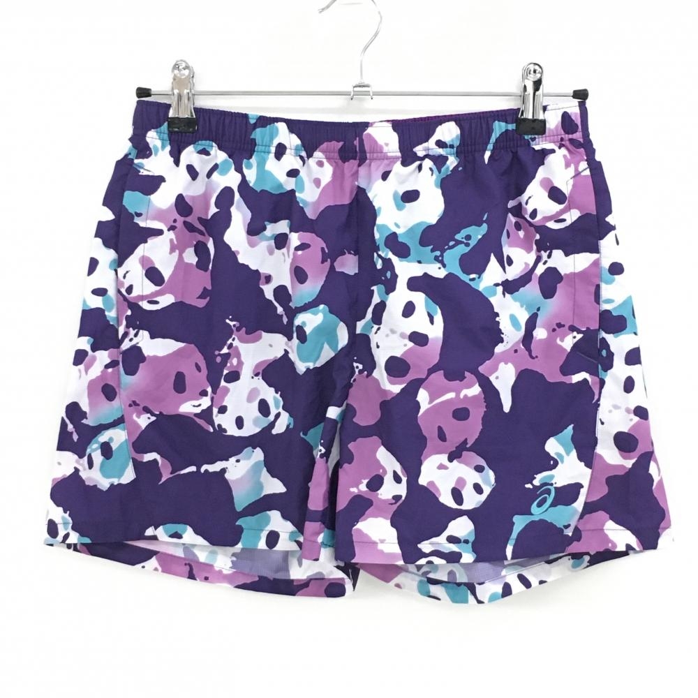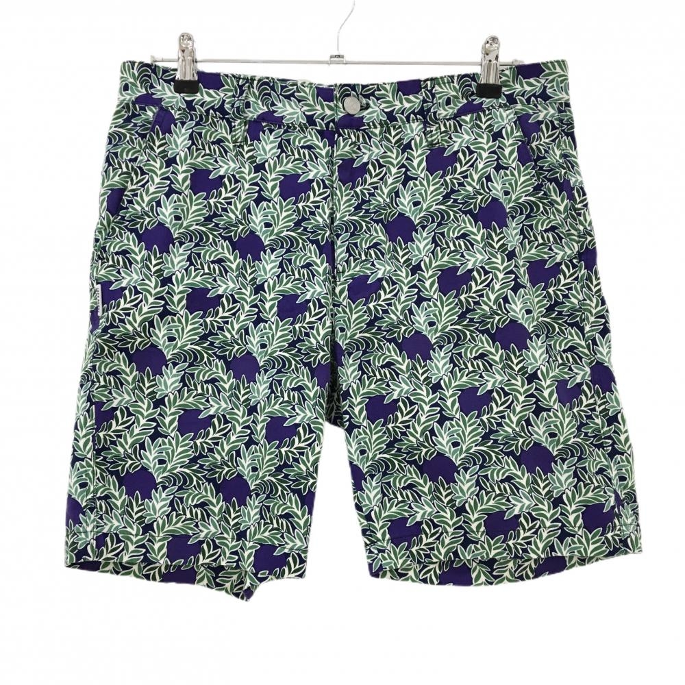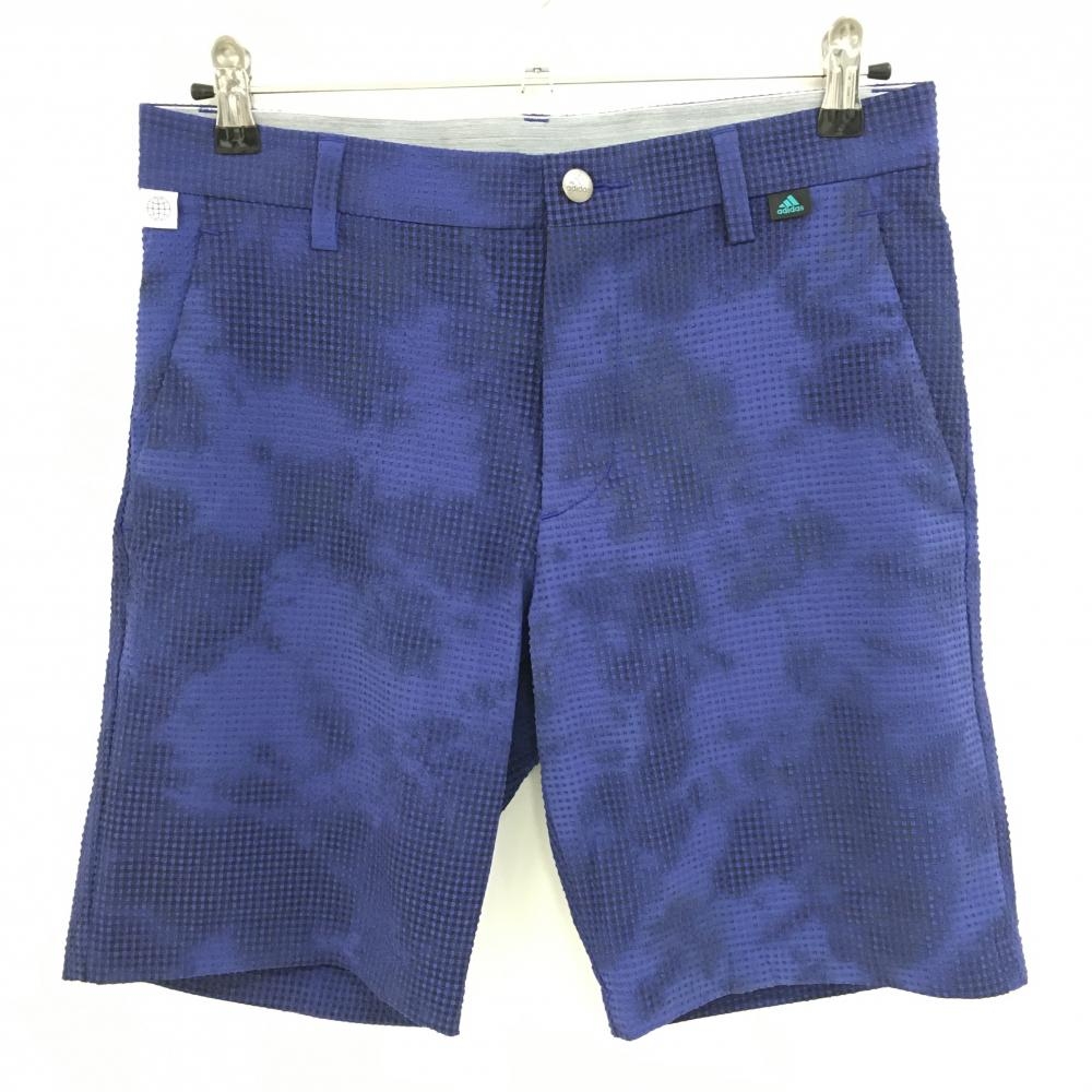 【超美品】アディダス ハーフパンツ ライトベージュ×ライトパープル 総柄 凸凹織生地 メンズ 82 ゴルフウェア adidas