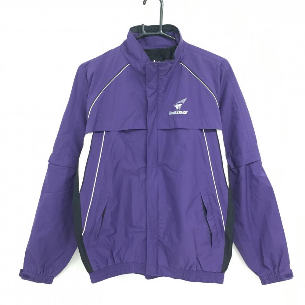 【超美品】ブリヂストンゴルフ 2WAYスニード ブルーパープル系×黒 地模様 蓄熱裏地 TOURB ブルゾン メンズ LL ゴルフウェア Bridgestone