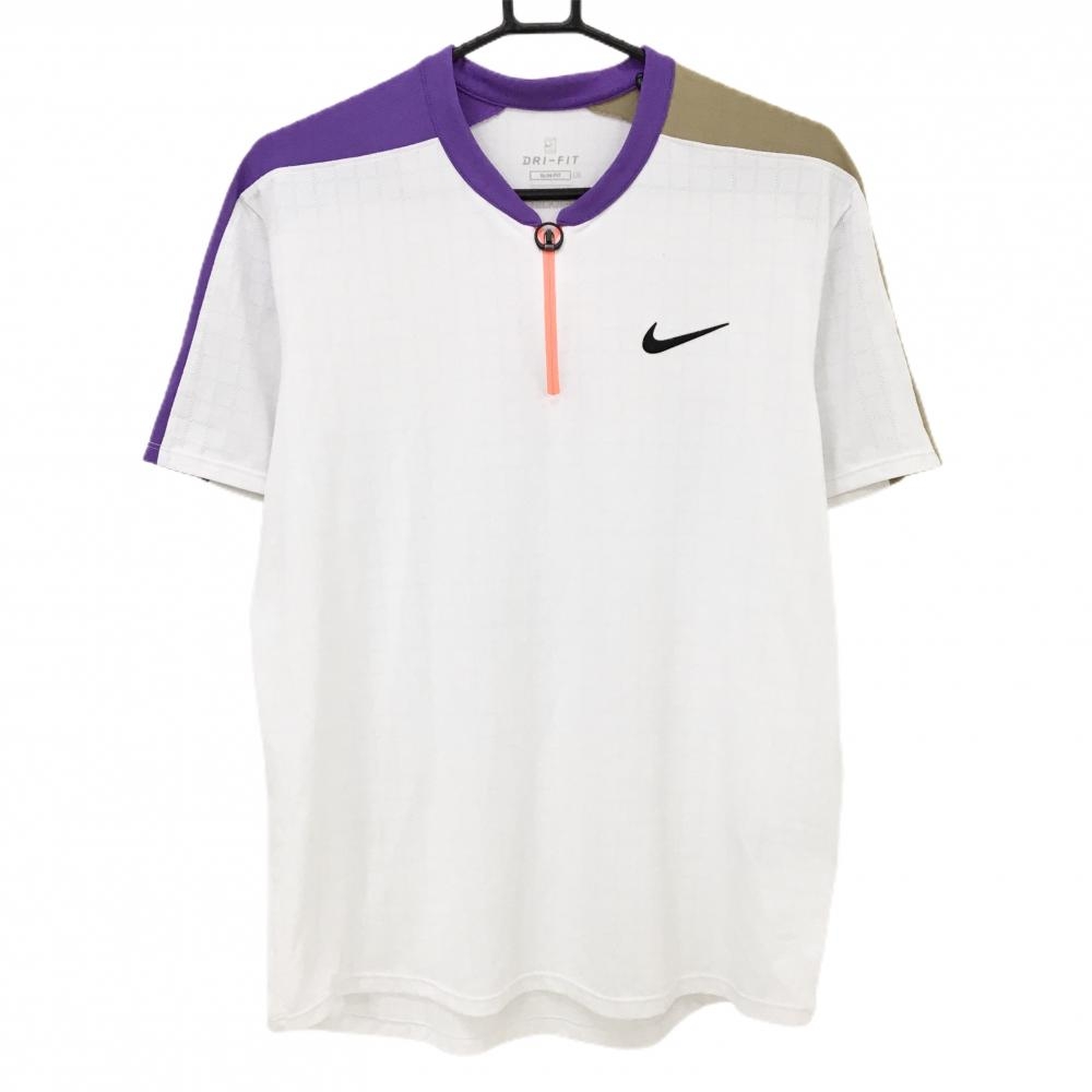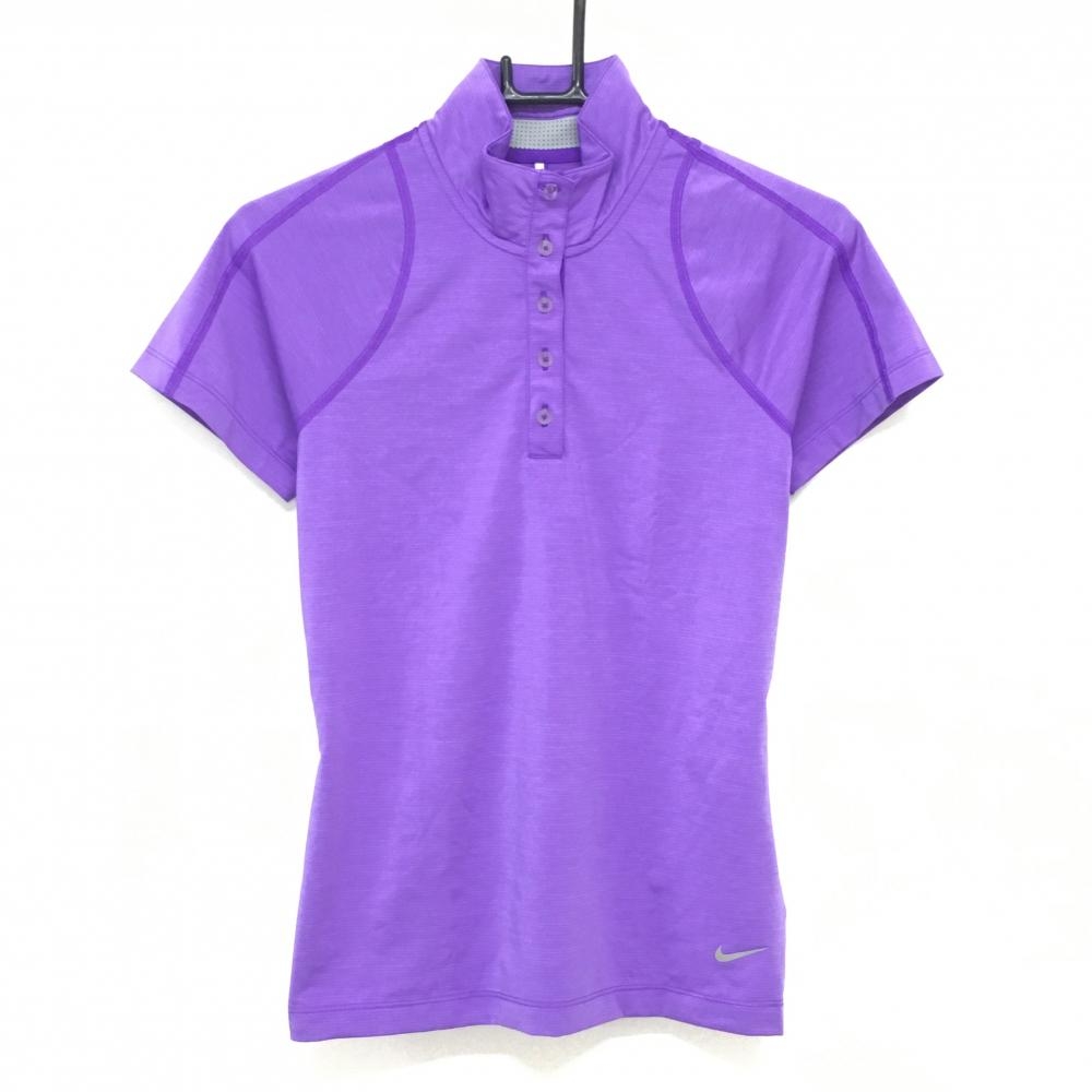 【超美品】フィラゴルフ 半袖ハイネックシャツ パープル フロントロゴ 裏微起毛 レディース L ゴルフウェア FILA GOLF