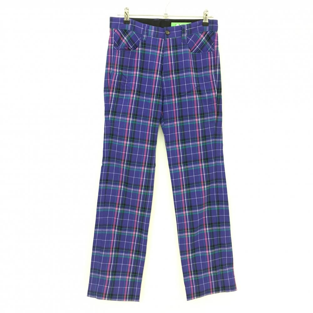 【美品】パーリーゲイツ パンツ パープル×ネイビー チェック メンズ 6(XL) ゴルフウェア PEARLY GATES
