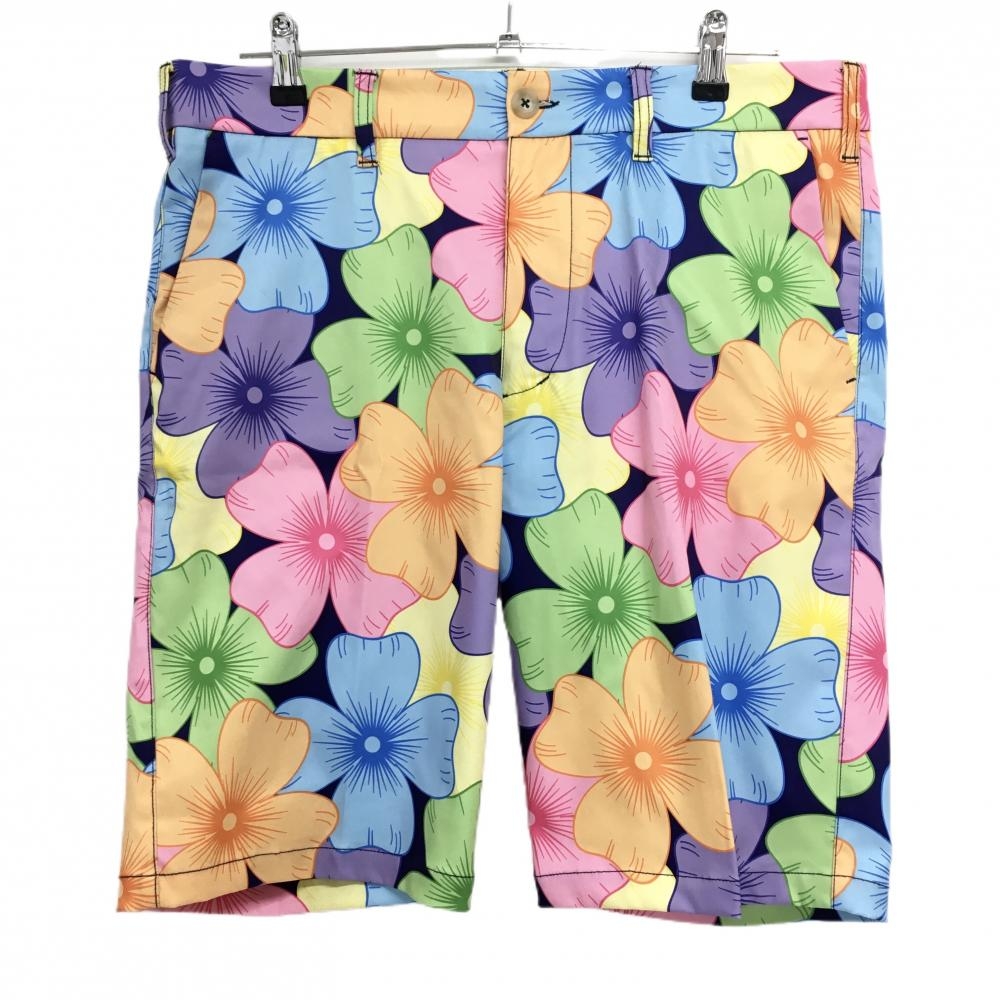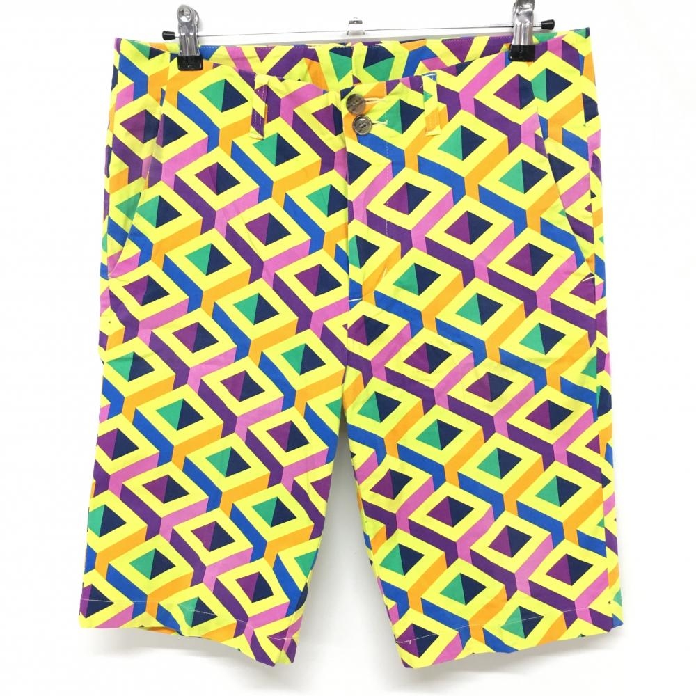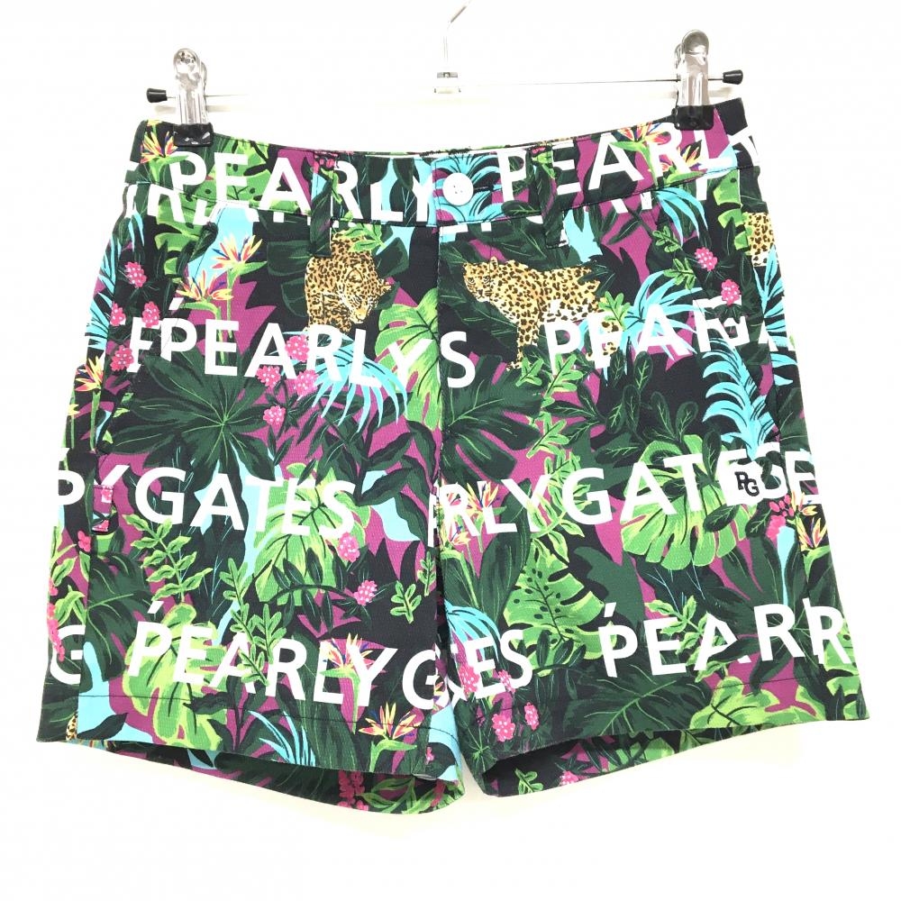 【新品】パーリーゲイツ ハーフパンツ オレンジ系×パープル ヤシの木柄 メンズ 4(M) ゴルフウェア PEARLY GATES