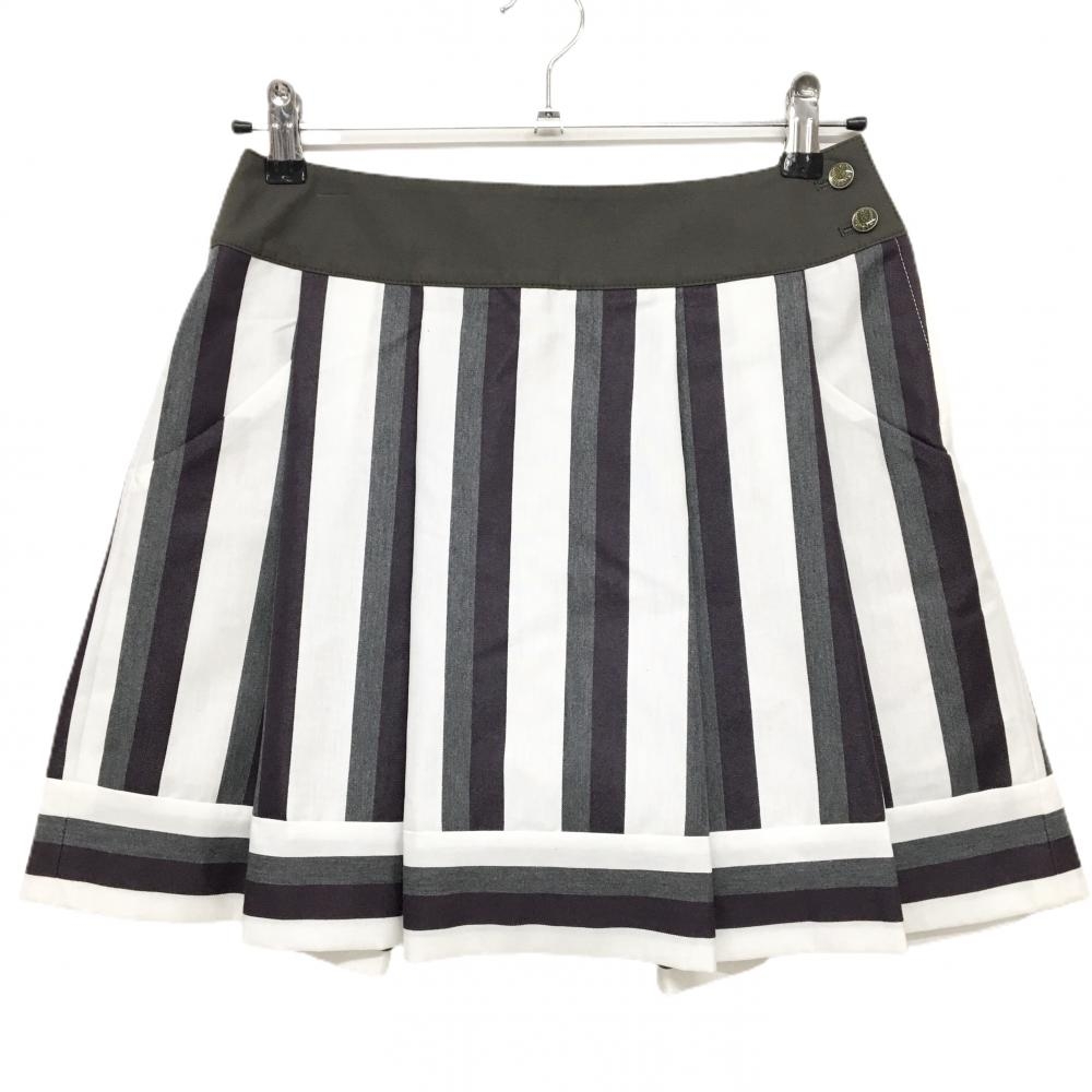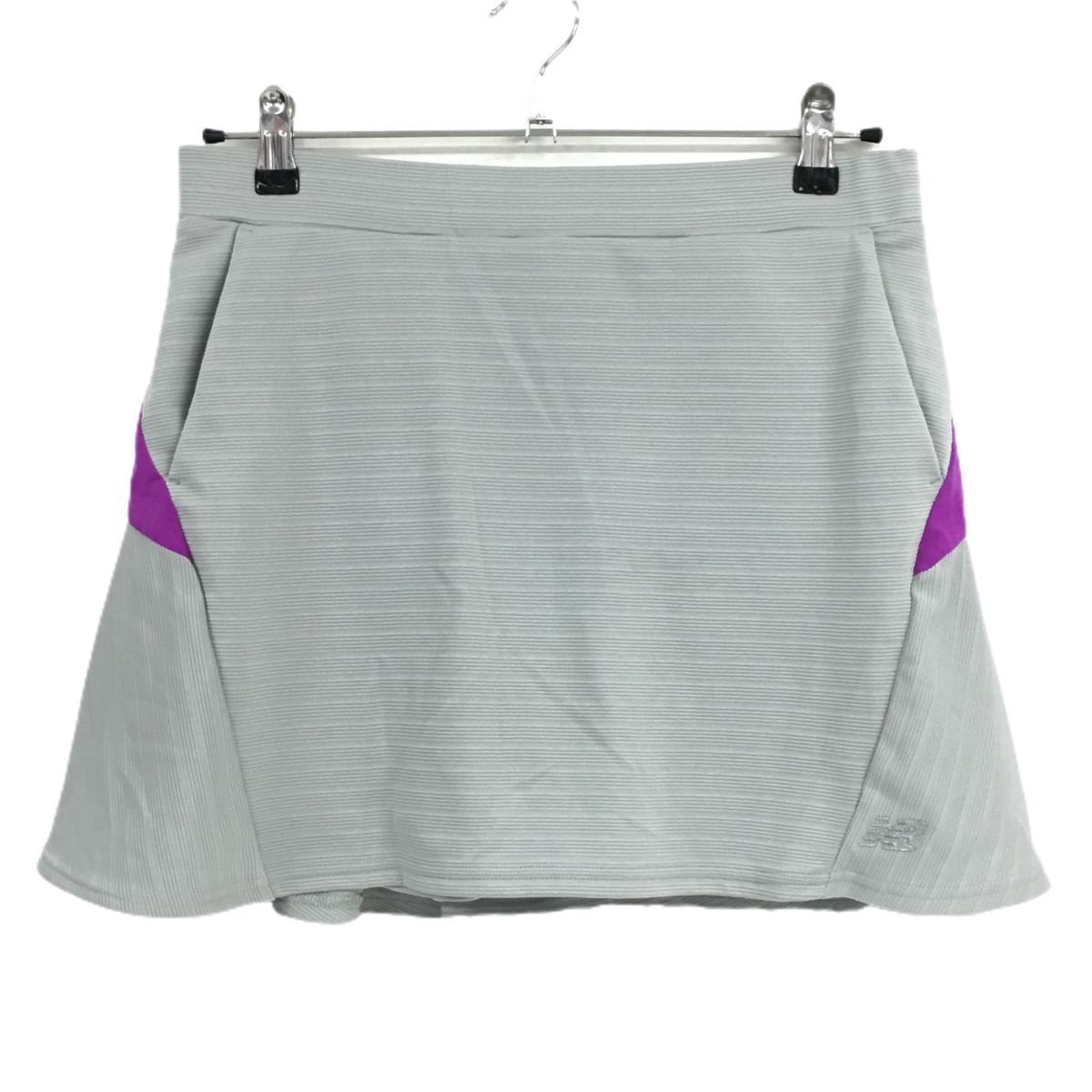 【超美品】プーマ スカート パープル×白 ボーダー ボックスプリーツ 裾ロゴ レディース L ゴルフウェア PUMA