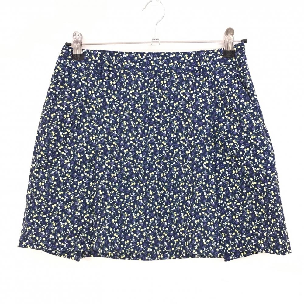 【美品】ゾーイ ウールスカート ダークネイビー×パープル リーフ柄 バックロゴ レディース 36(S) ゴルフウェア ZOY