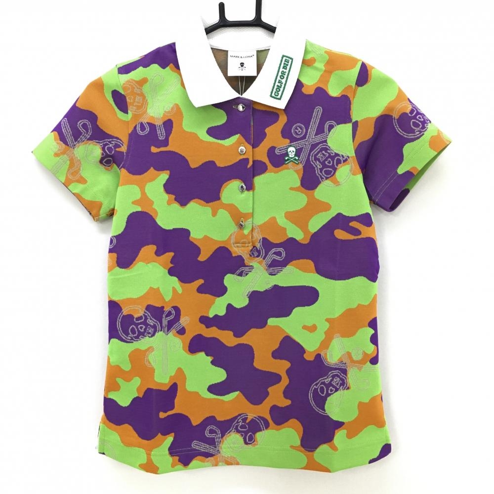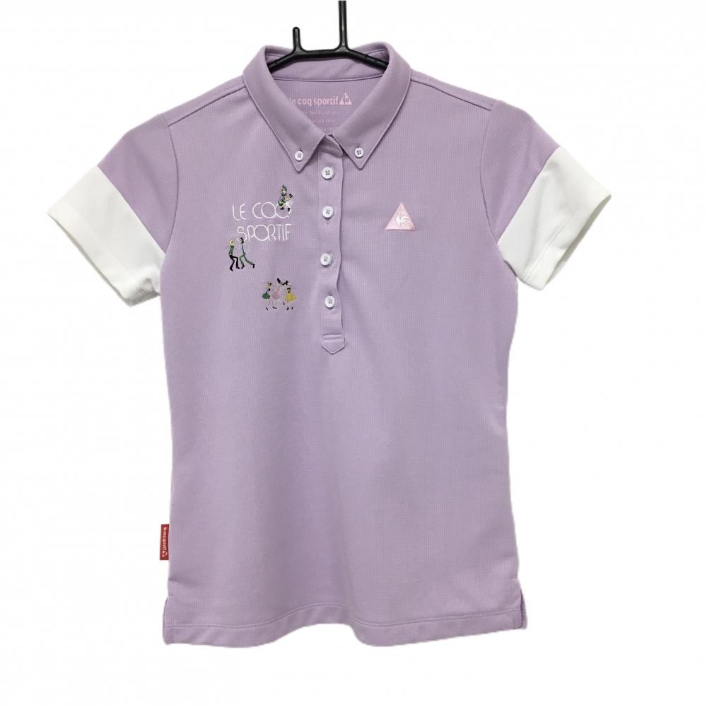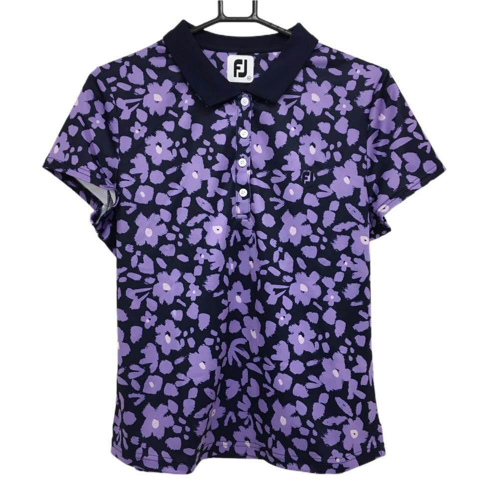 【超美品】マウロアゴルフ 半袖ポロシャツ パープル×白 ドット 襟・前立て花柄 レディース M ゴルフウェア MAULOA GOLF