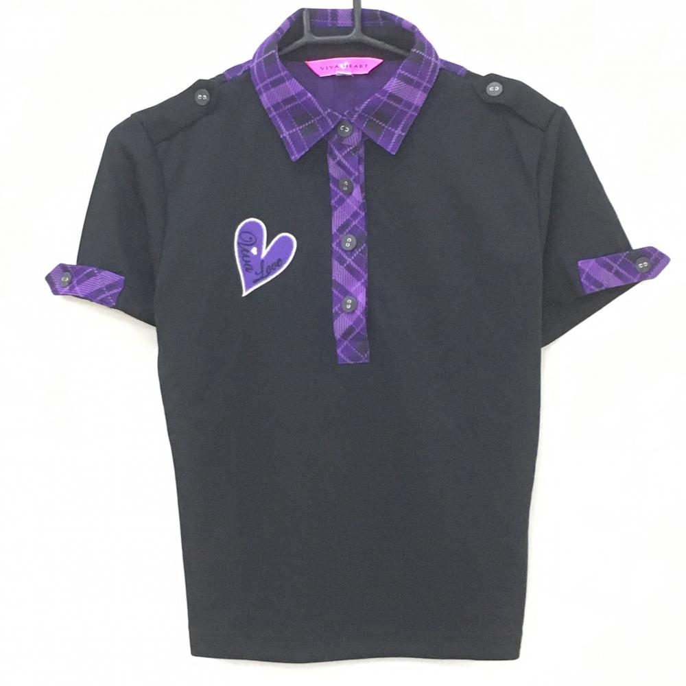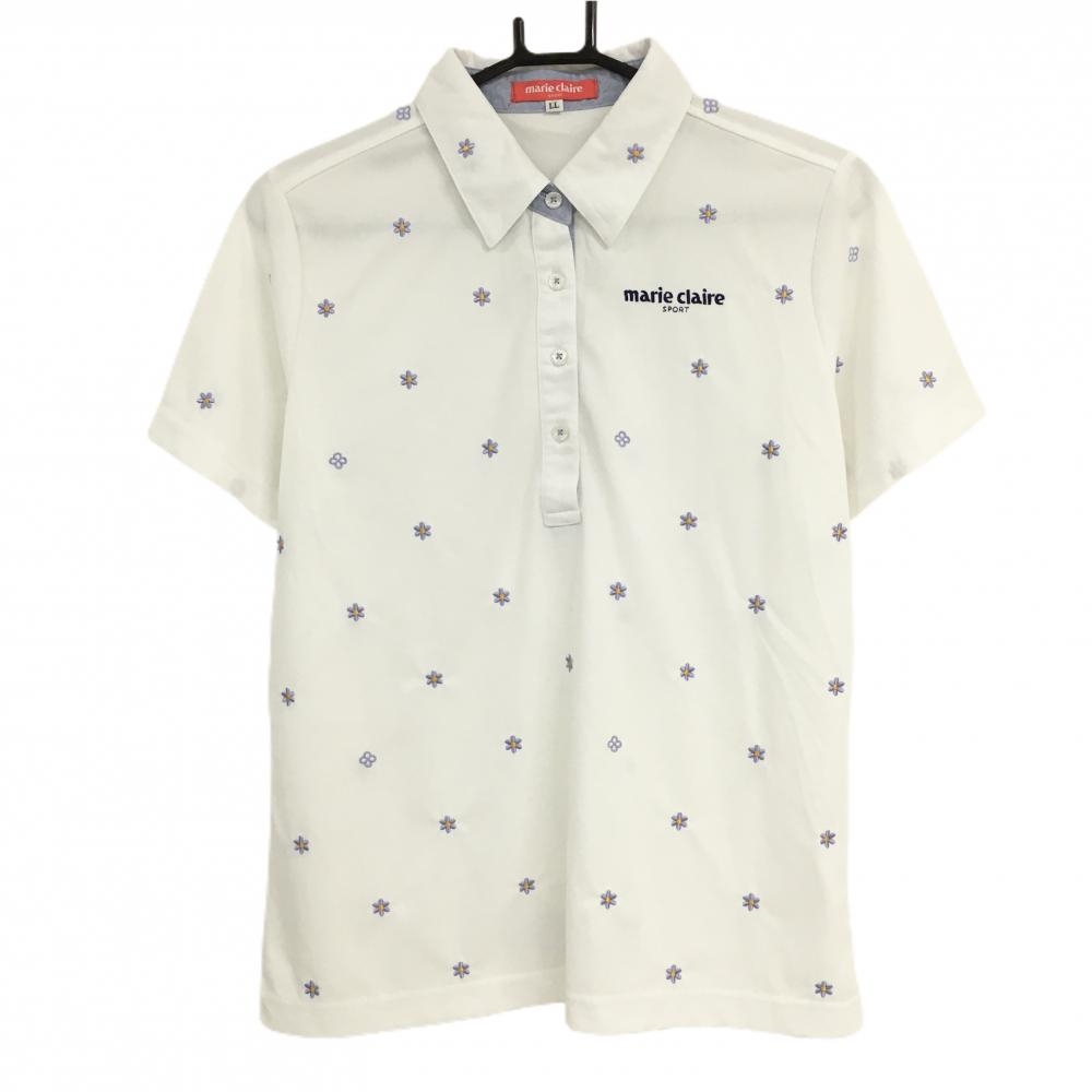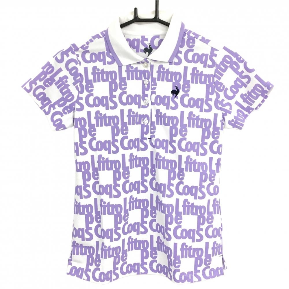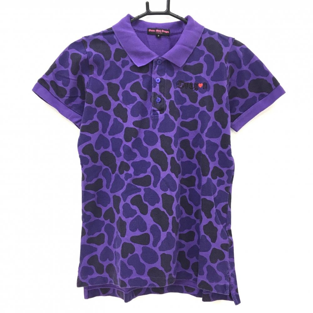 【超美品】マウロアゴルフ 半袖ポロシャツ パープル×白 ドット 襟・前立て花柄 レディース M ゴルフウェア MAULOA GOLF