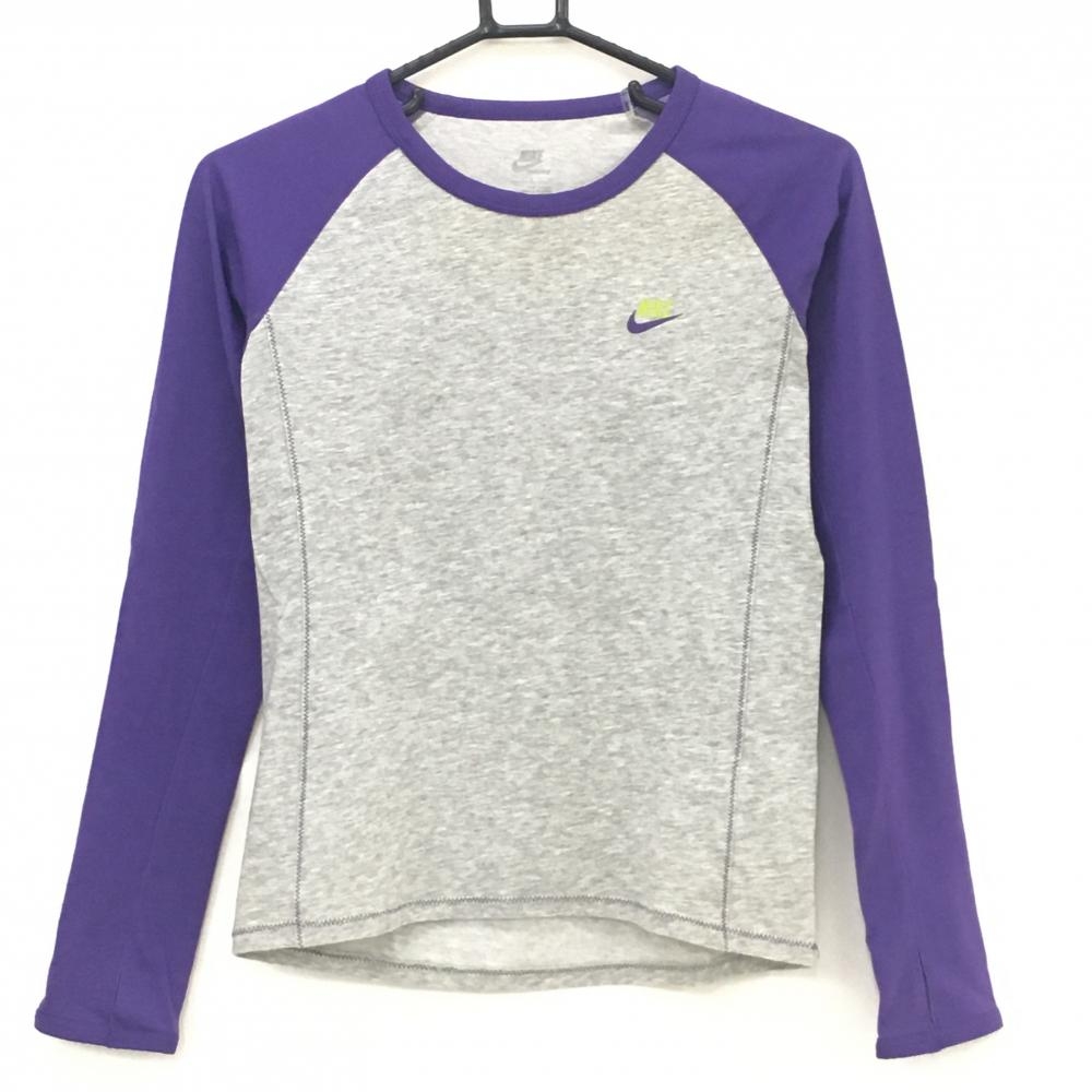 【超美品】チャンピオン 長袖Tシャツ 杢グレー×パープル フロントロゴプリント レディース MEDIUM ゴルフウェア Champion