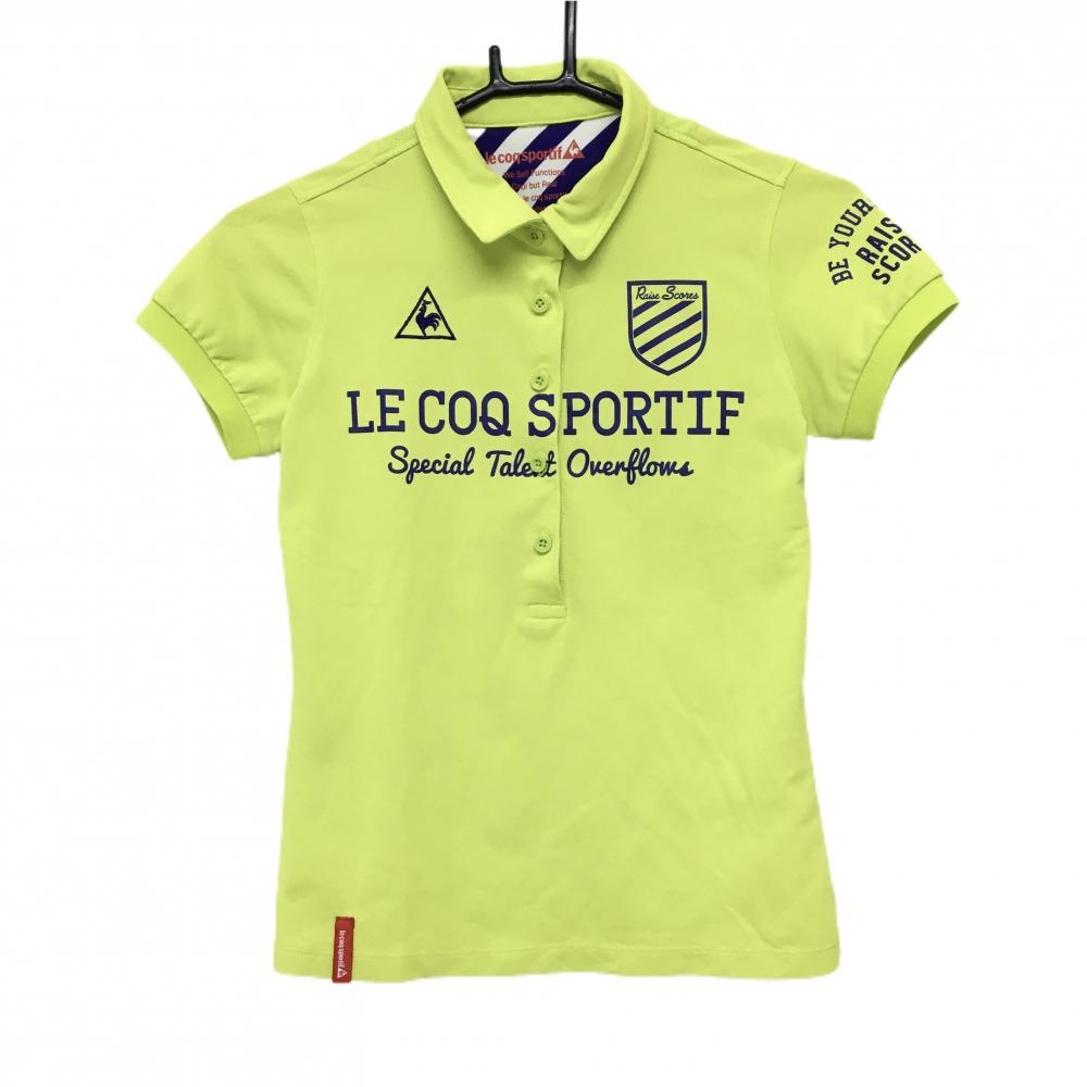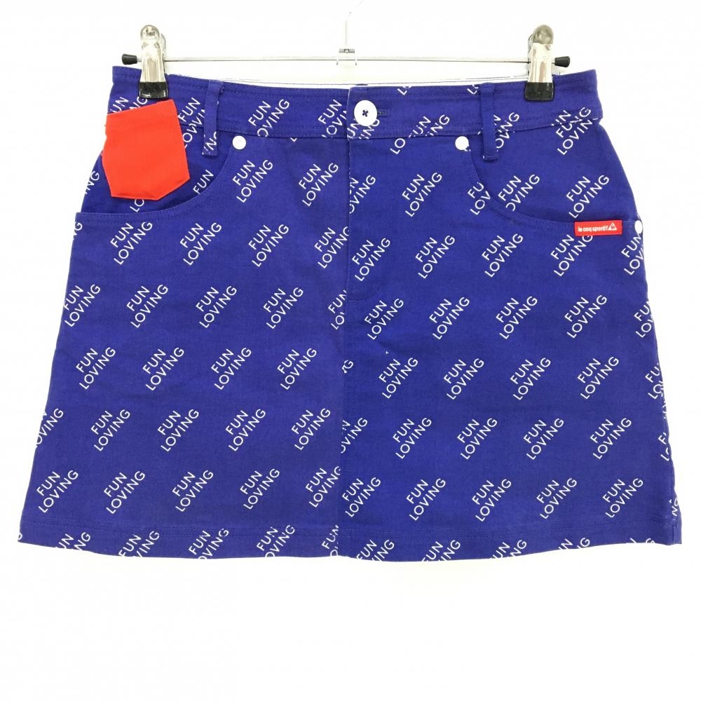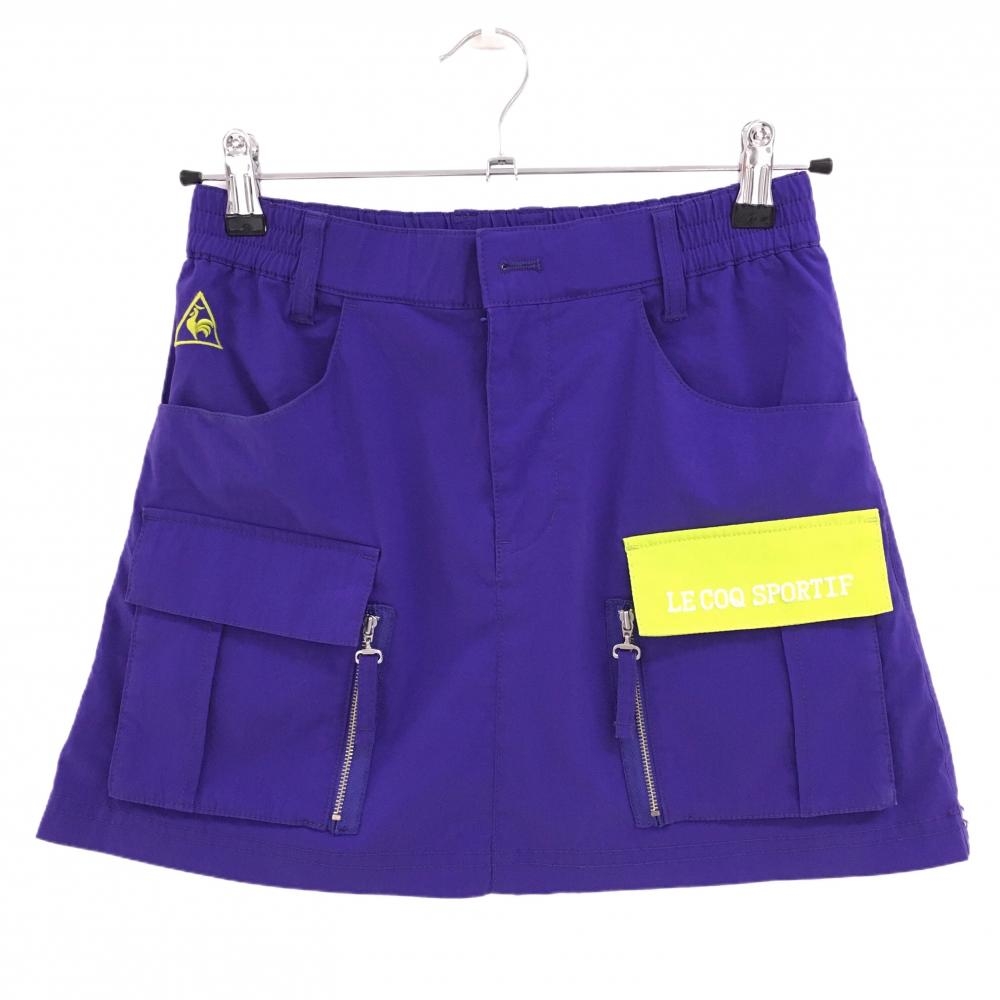 【超美品】ルコックゴルフ カーゴスカート パープル×蛍光グリーン ベルト部一部ゴム レディース 9 ゴルフウェア le coq sportif