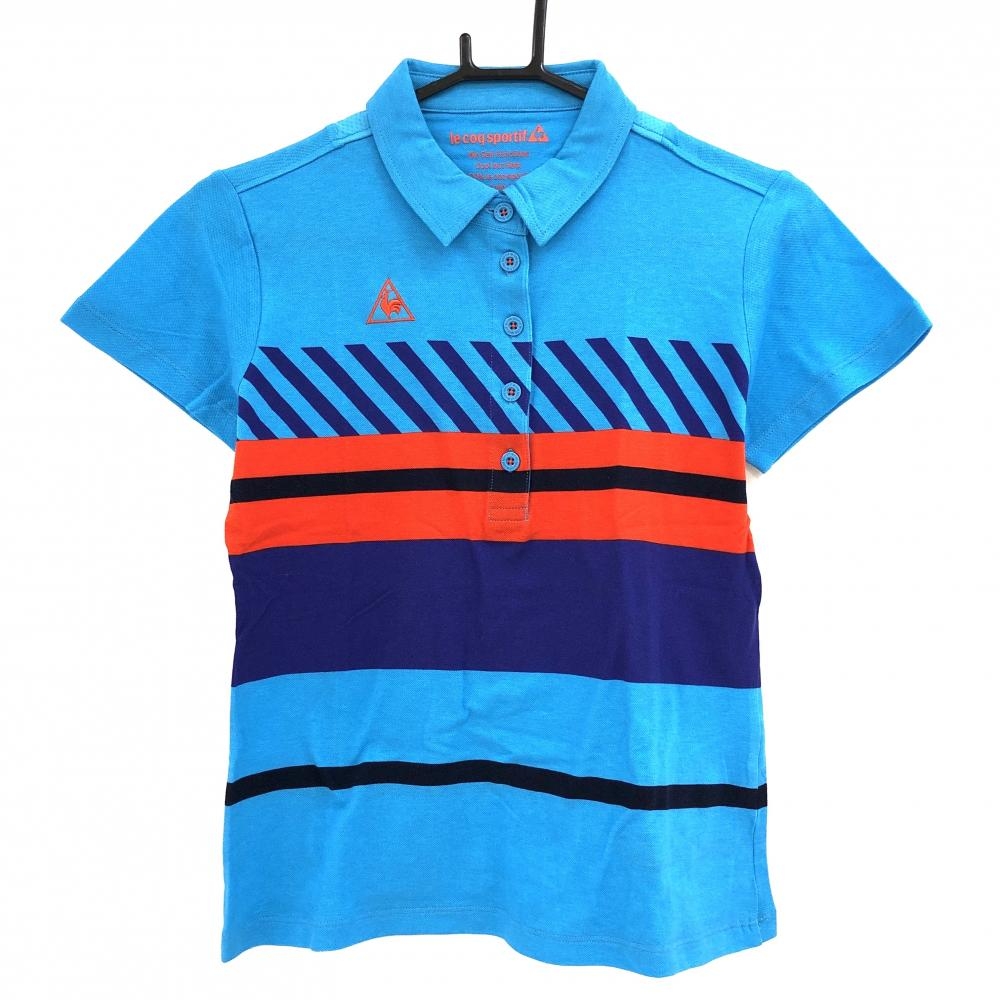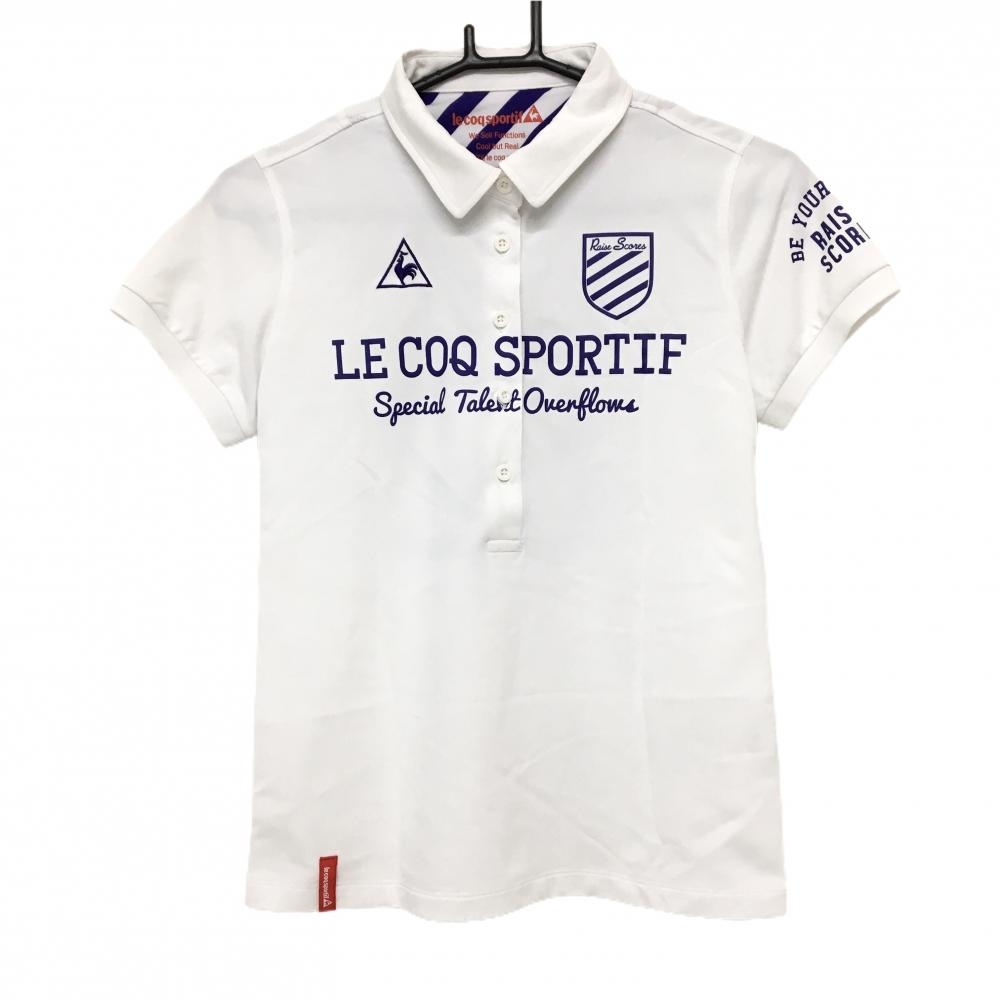 【超美品】ルコック 長袖ハイネックシャツ ダークネイビー×パープル ロゴプリント レディース M ゴルフウェア le coq sportif