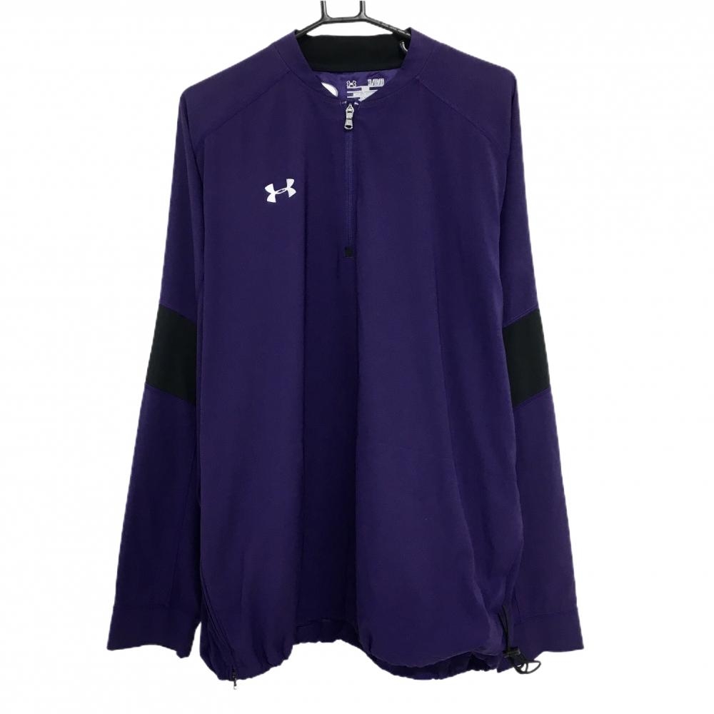 【美品】アンダーアーマー 中綿ベスト 黒×パープル ロゴ総柄 スナップボタン レディース LG ゴルフウェア UNDER ARMOUR
