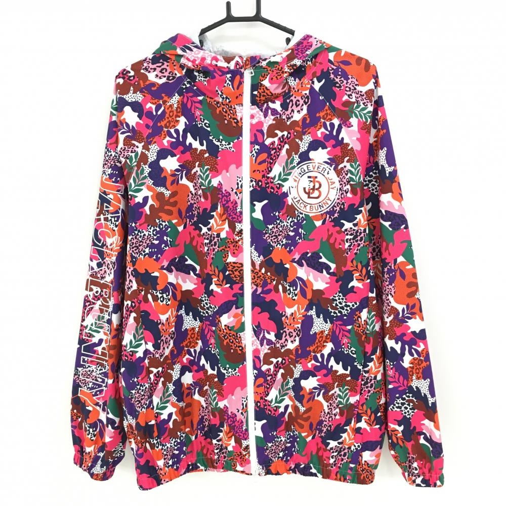 【美品】ジャックバニー パーカー パープル ロゴワッペン ボンディング生地 レディース 2(L) ゴルフウェア Jack Bunny