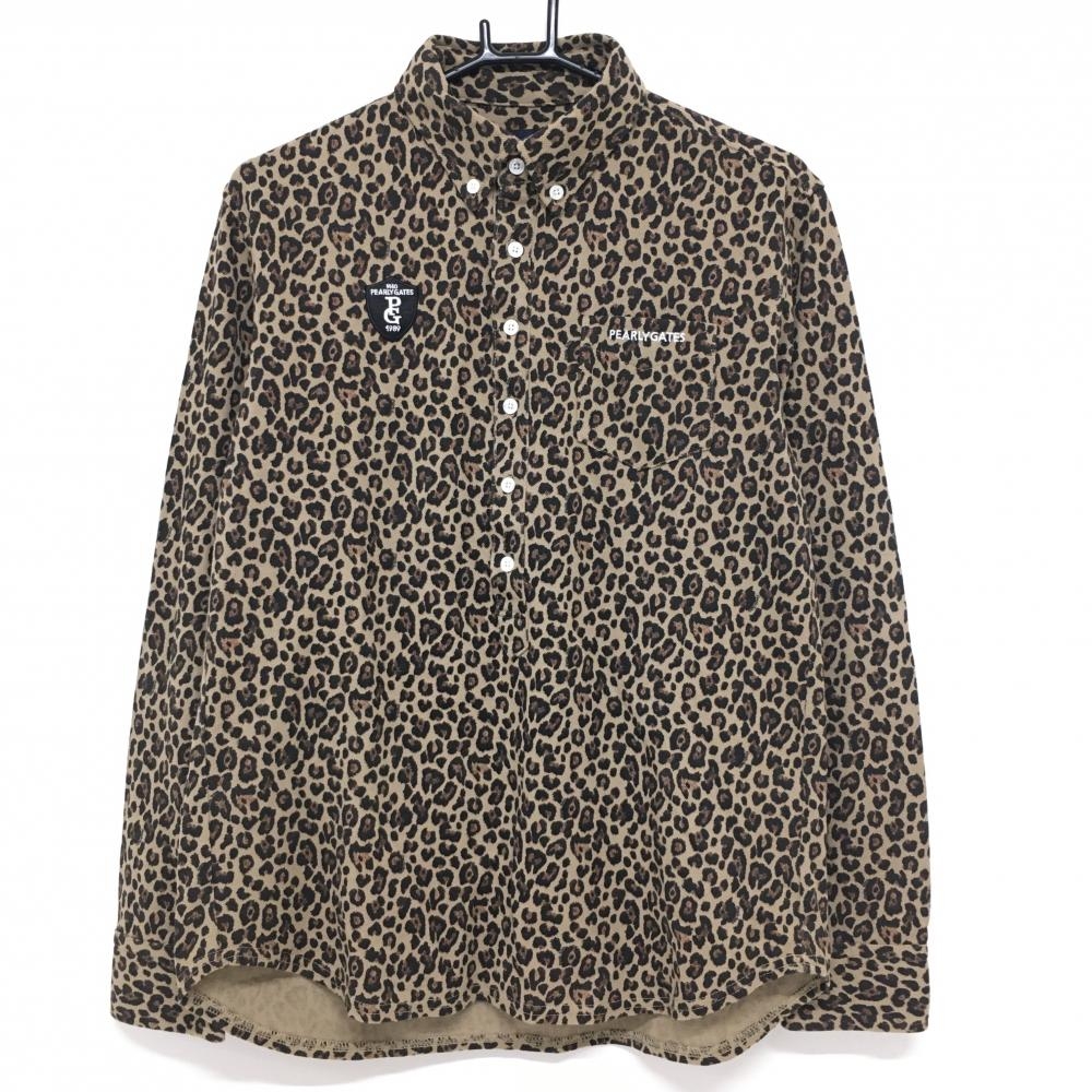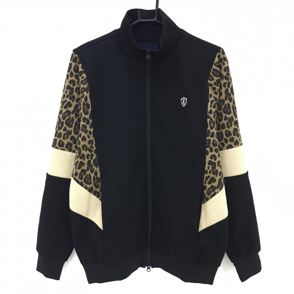 【美品】パーリーゲイツ セーター 黒×ベージュ レオパード ヒョウ柄 ニット ウール混 メンズ 6(XL) ゴルフウェア PEARLY GATES
