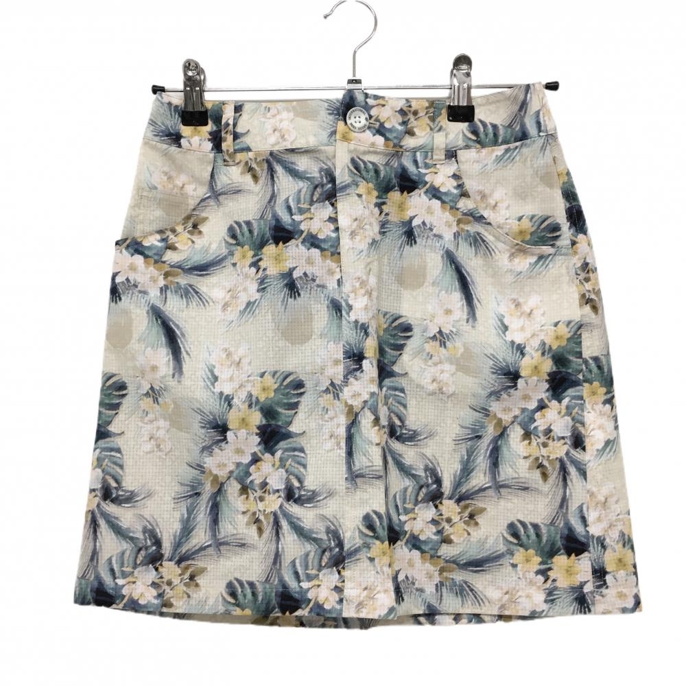 ジャックバニー スカート ベージュ×白 バックロゴプリント 内側インナーパンツ レディース 1(M) ゴルフウェア Jack Bunny