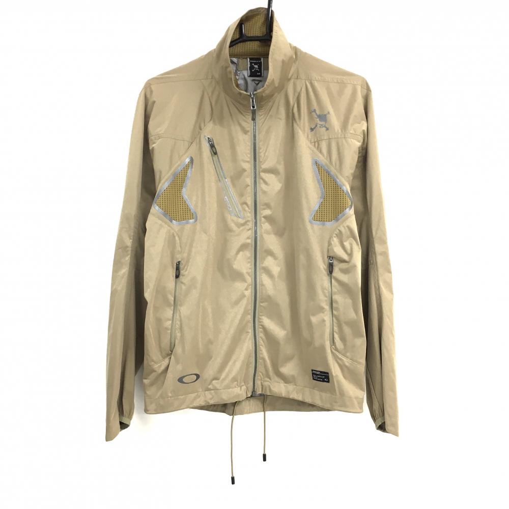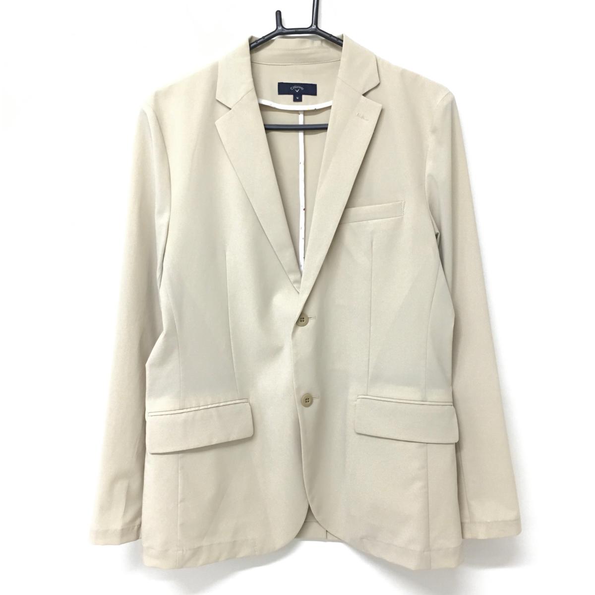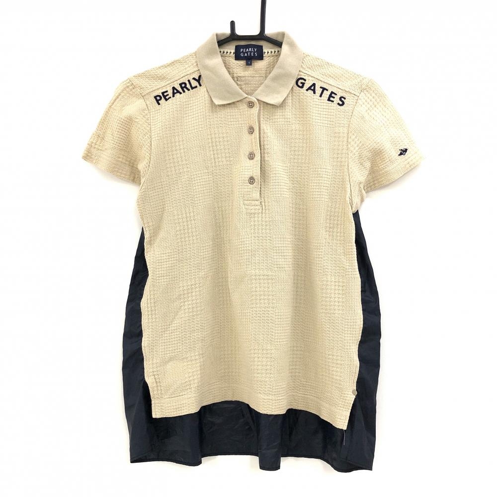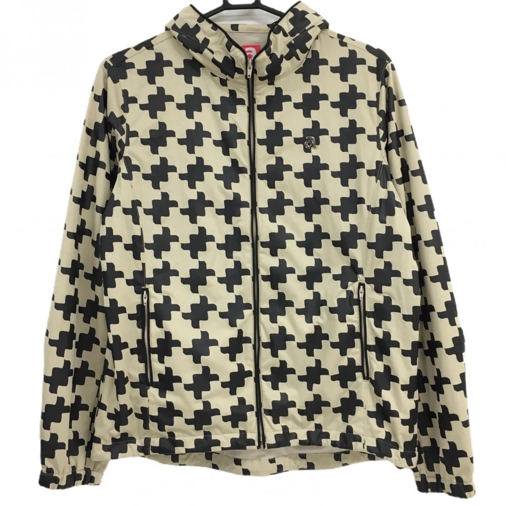 【美品】パーリーゲイツ ジャケットブルゾン ベージュ 地模様 蓄熱裏地 ロゴ刺しゅう レディース 2(L) ゴルフウェア PEARLY GATES