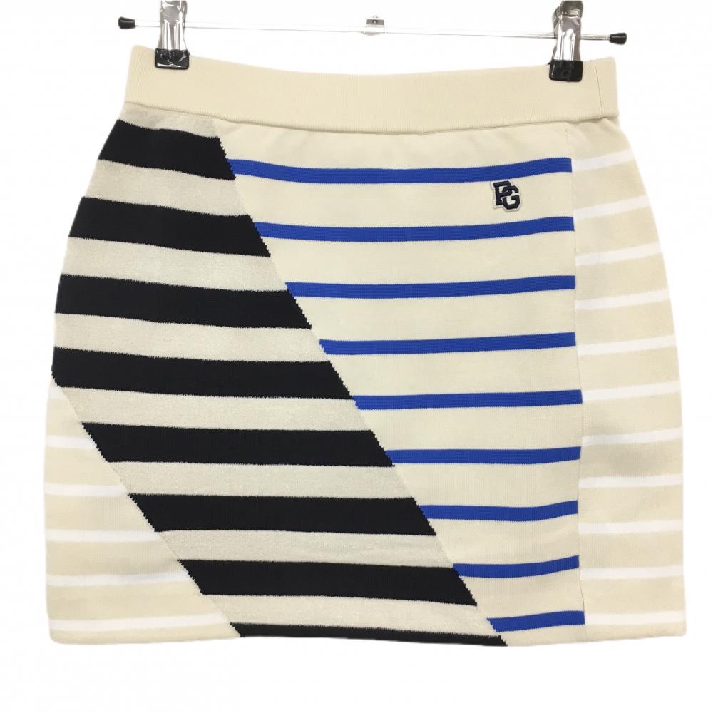 【超美品】パーリーゲイツ スカート ベージュ×グリーン ウエストゴム ウールインナーパンツ付 レディース 0(S) ゴルフウェア PEARLY GATES