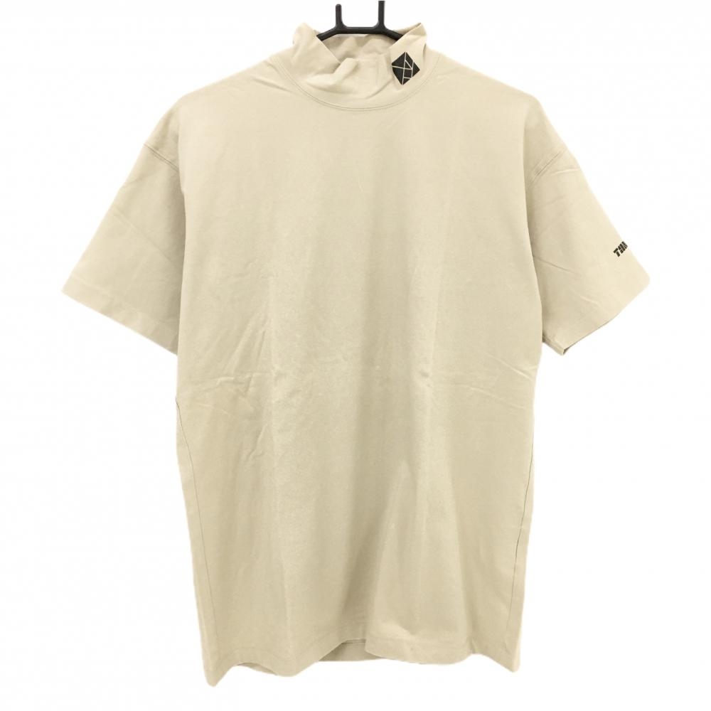 【超美品】ジャックバニー ハイネックセーター ベージュ×黒 ネックロゴ ニット メンズ 6(XL) ゴルフウェア Jack Bunny