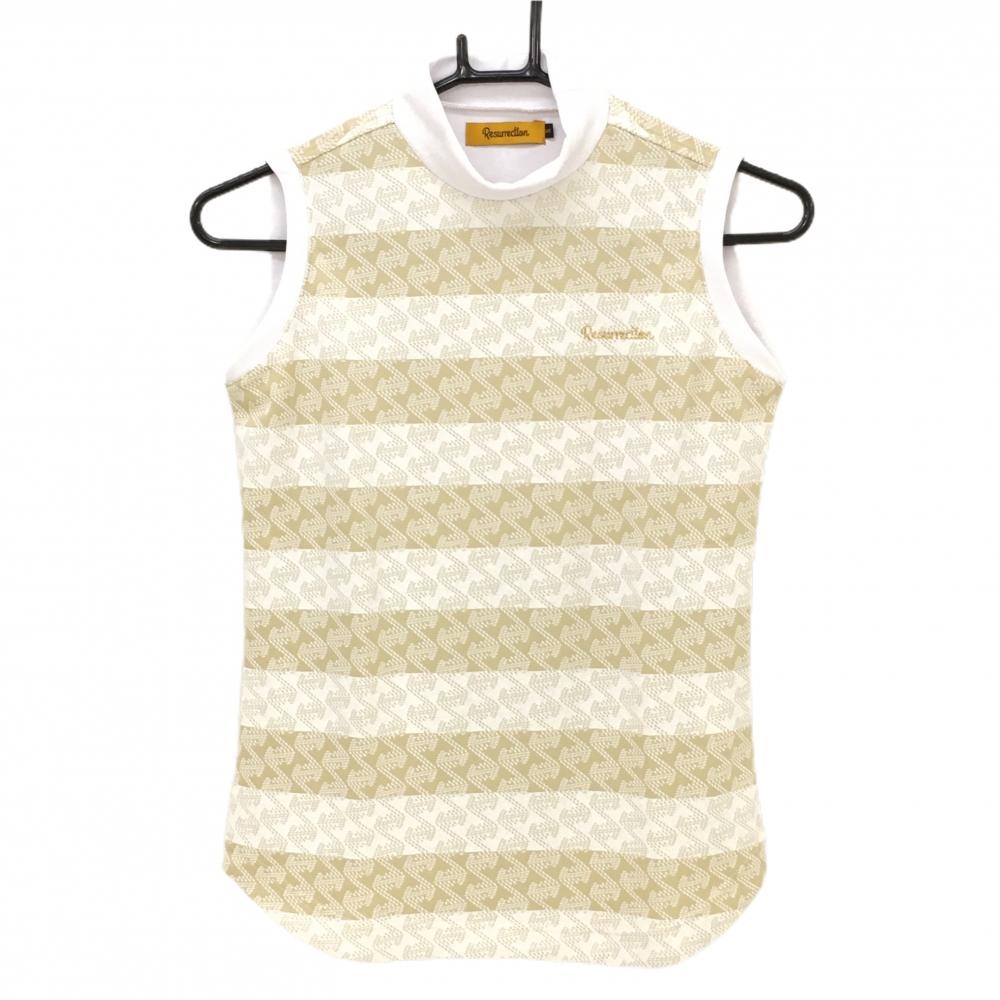 デサントゴルフ タートルネックセーター 白×ベージュ 一部ダイヤ柄 ニット 中田英寿 レディース M ゴルフウェア DESCENTE