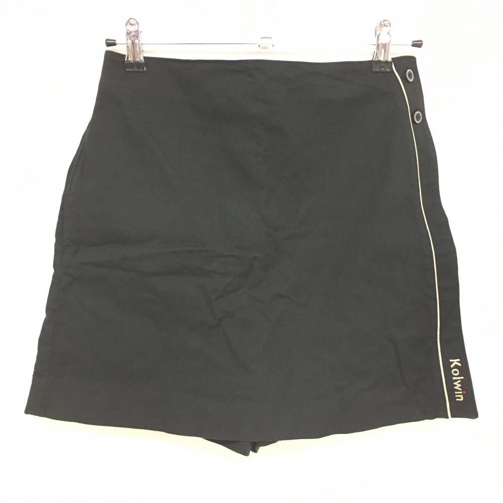 【超美品】エドウィンプレミア スカート 黒×ベージュ チェック 裏起毛 レディース 7 ゴルフウェア EDWIN GOLF