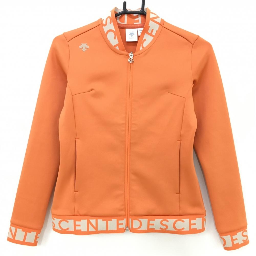 【新品】デサントゴルフ 長袖ポロシャツ ベージュ×ライトブルー 袖ロゴ 裏微起毛 スナップボタン レディース M ゴルフウェア DESCENTE