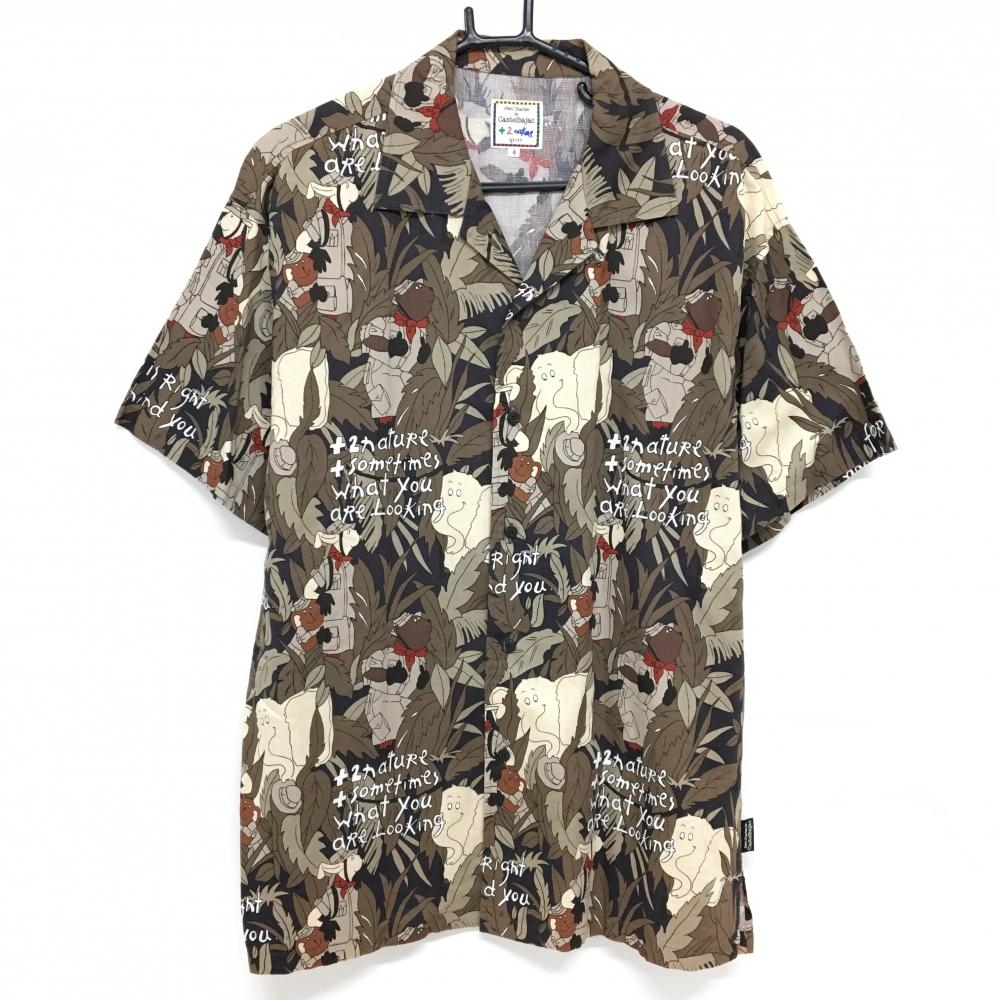 【美品】マスターバニー セーター ブラウン×ベージュ×オレンジ 総柄 コットン100% メンズ 4(M) ゴルフウェア MASTER BUNNY EDITION