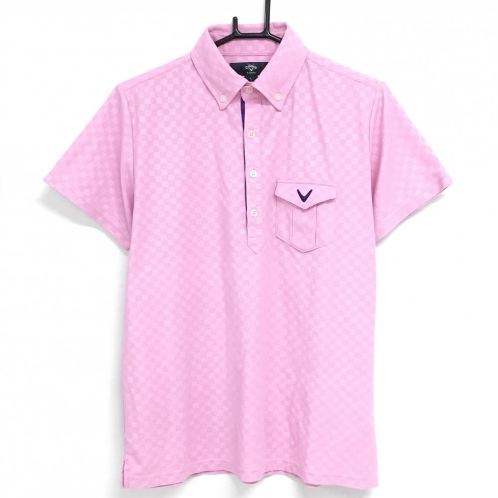 キャロウェイ 長袖ポロシャツ ピンク ロゴ白 前立て内側総柄 レディース L ゴルフウェア Callaway
