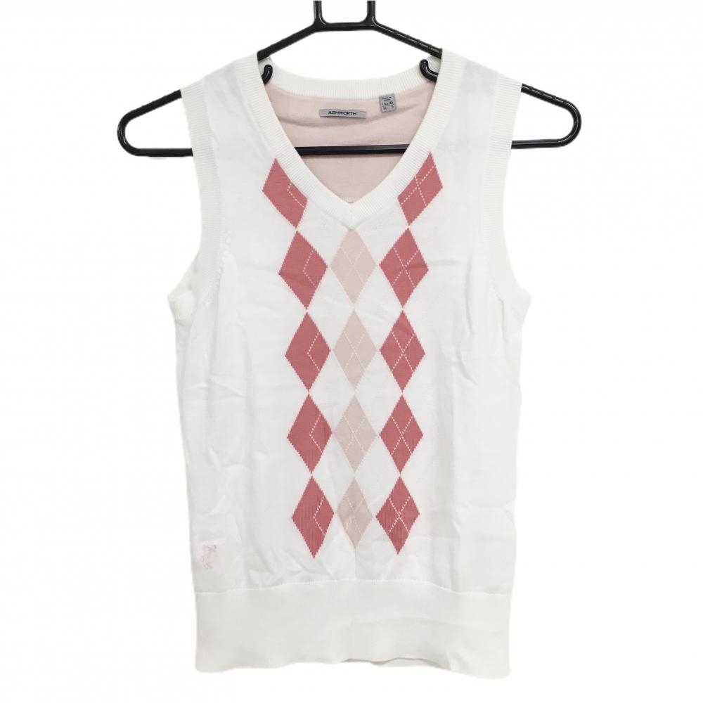 アルチビオ ニットベスト サーモンピンク×白 背面透かし編み レディース 36(S) ゴルフウェア archivio