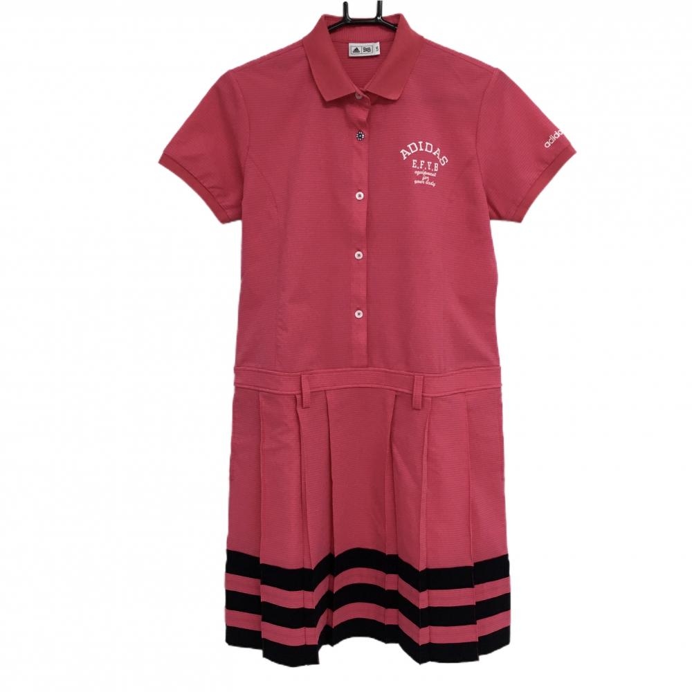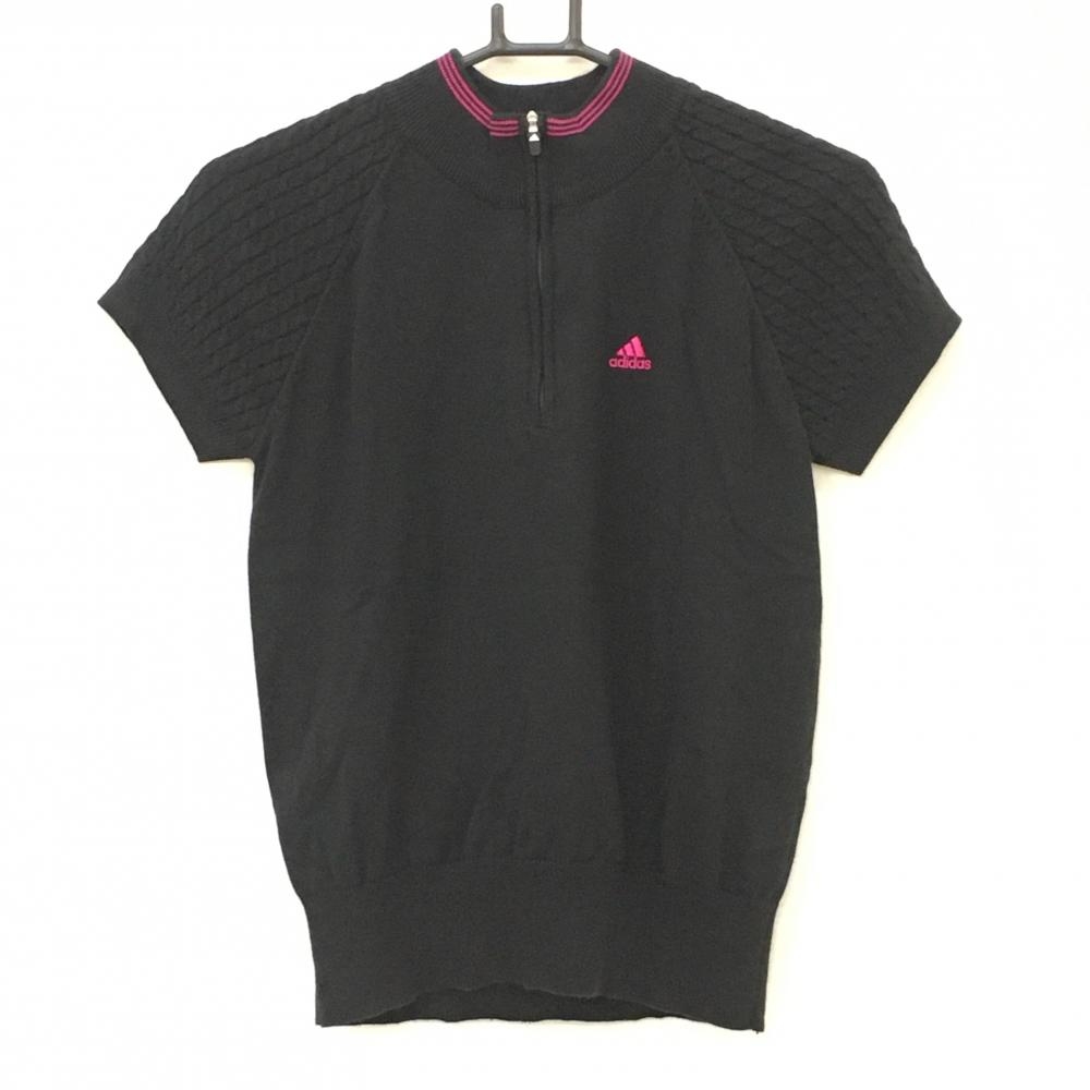 アディダス ハイネックセーター ピンク×白 前身頃アーガイル柄 ハーフジップ ニット レディース M/M ゴルフウェア adidas