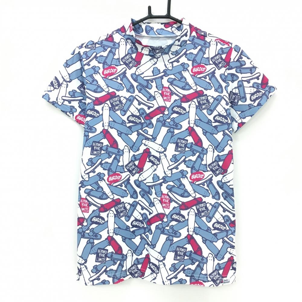 ゾーイ 長袖ハイネックシャツ 白×ピンク×ネイビー 総柄 胸ロゴ レディース M ゴルフウェア ZOY