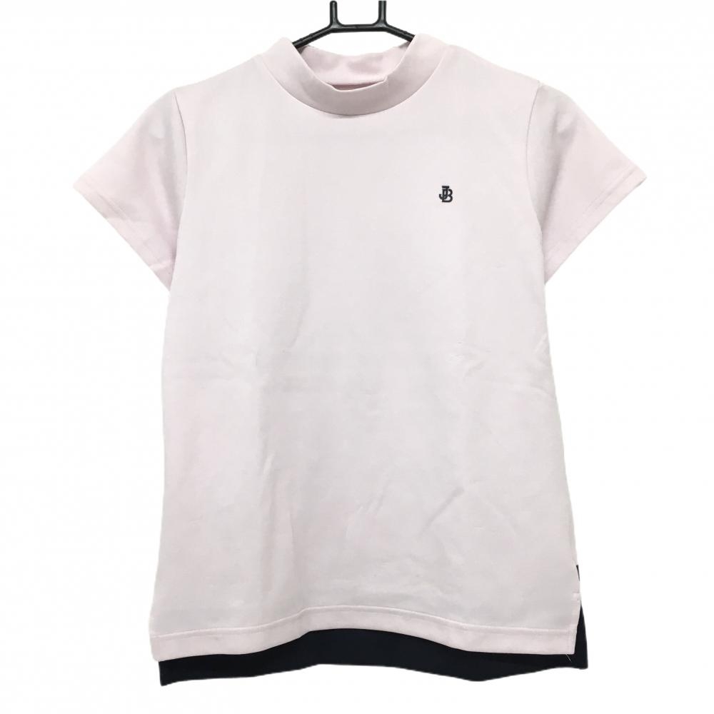 【美品】ジャックバニー セーター ピンク×白 ネックロゴ 袖星刺しゅう ポリエステル100% レディース 1(M) ゴルフウェア Jack Bunny