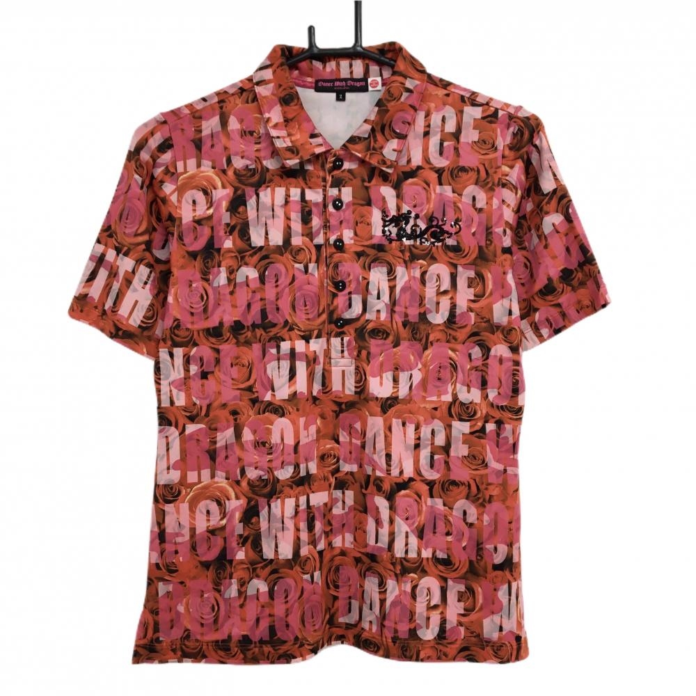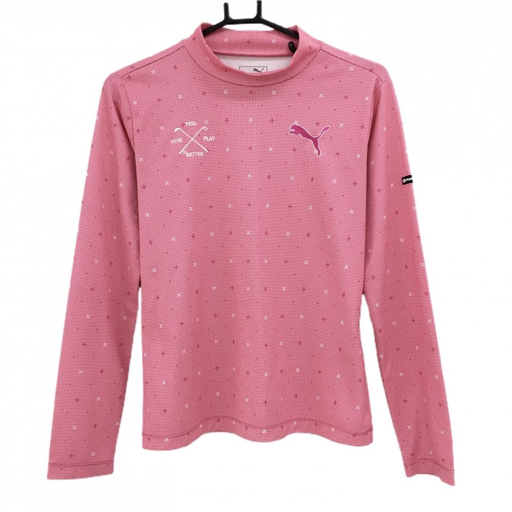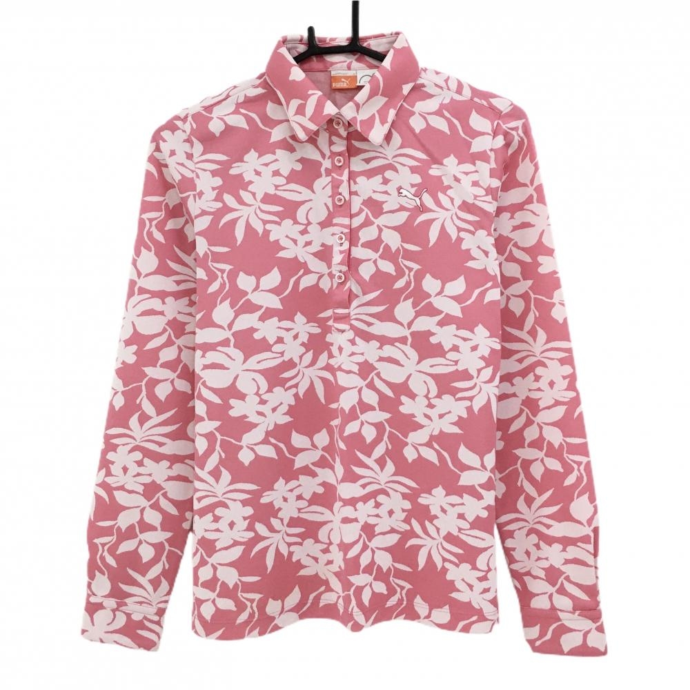 【超美品】ピン 長袖ポロシャツ ピンク 総柄地模様 胸ロゴ レディース S ゴルフウェア PING