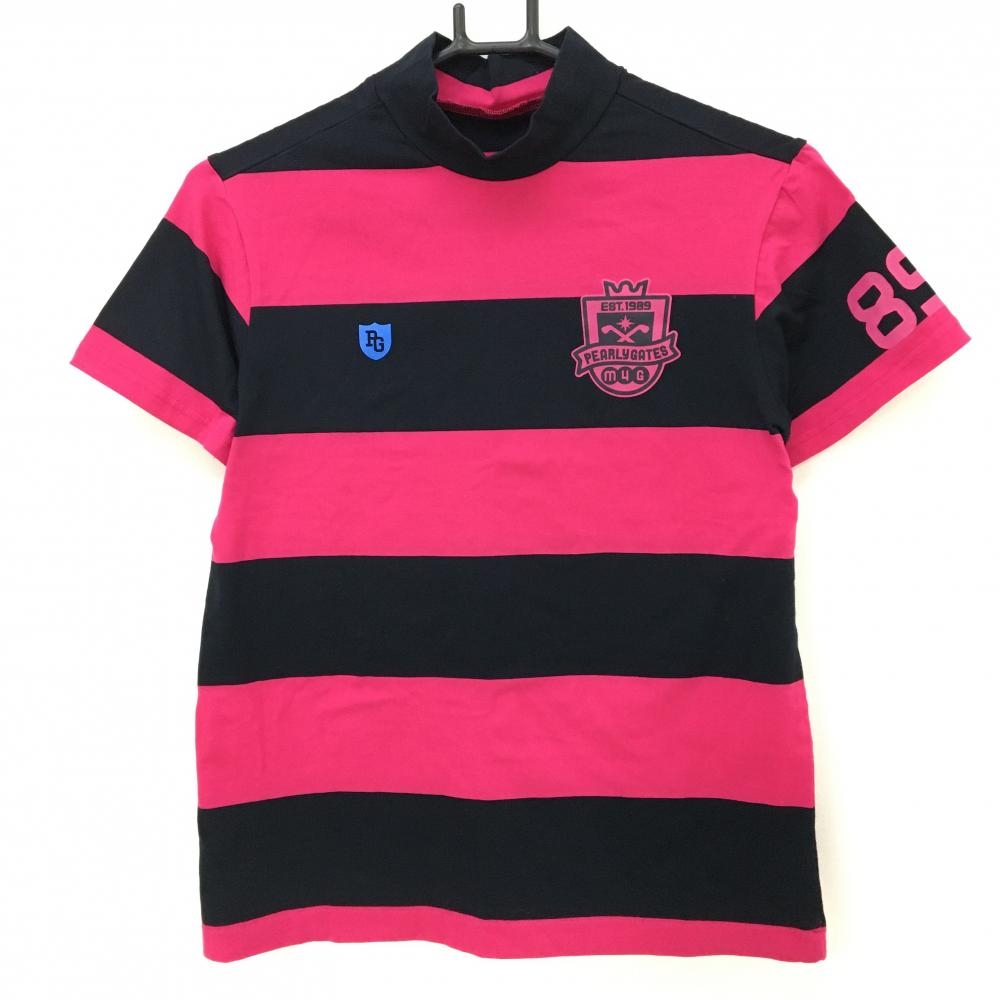 パーリーゲイツ 長袖ハイネックシャツ ピンク×白 ボーダー レディース 1(M) ゴルフウェア PEARLY GATES