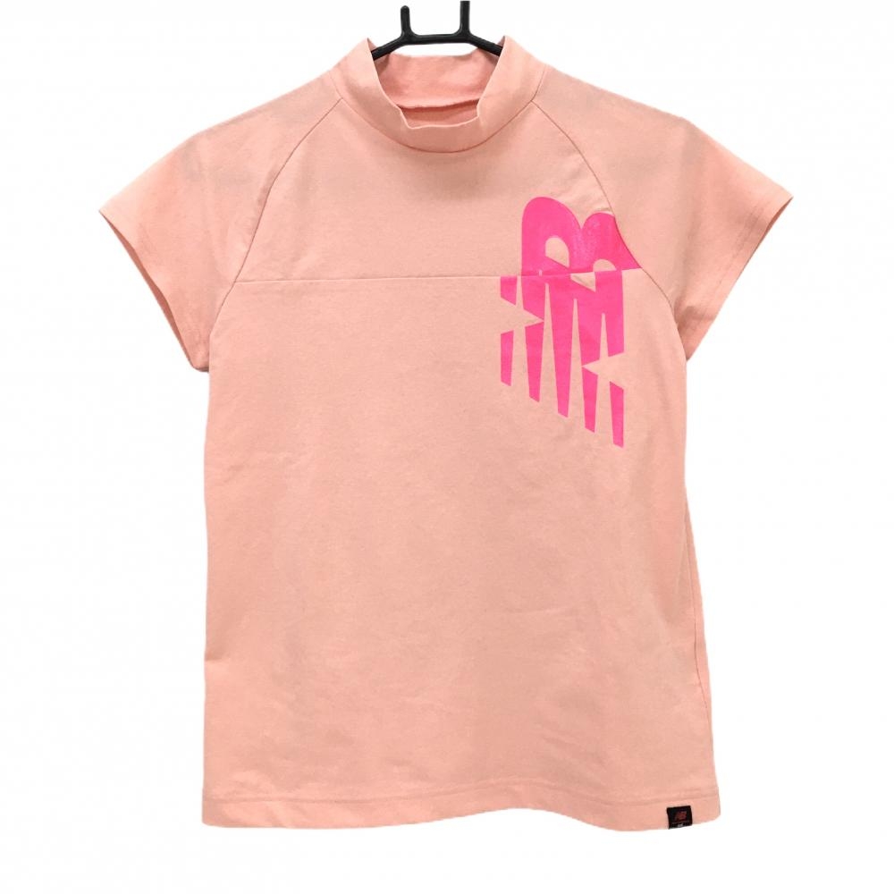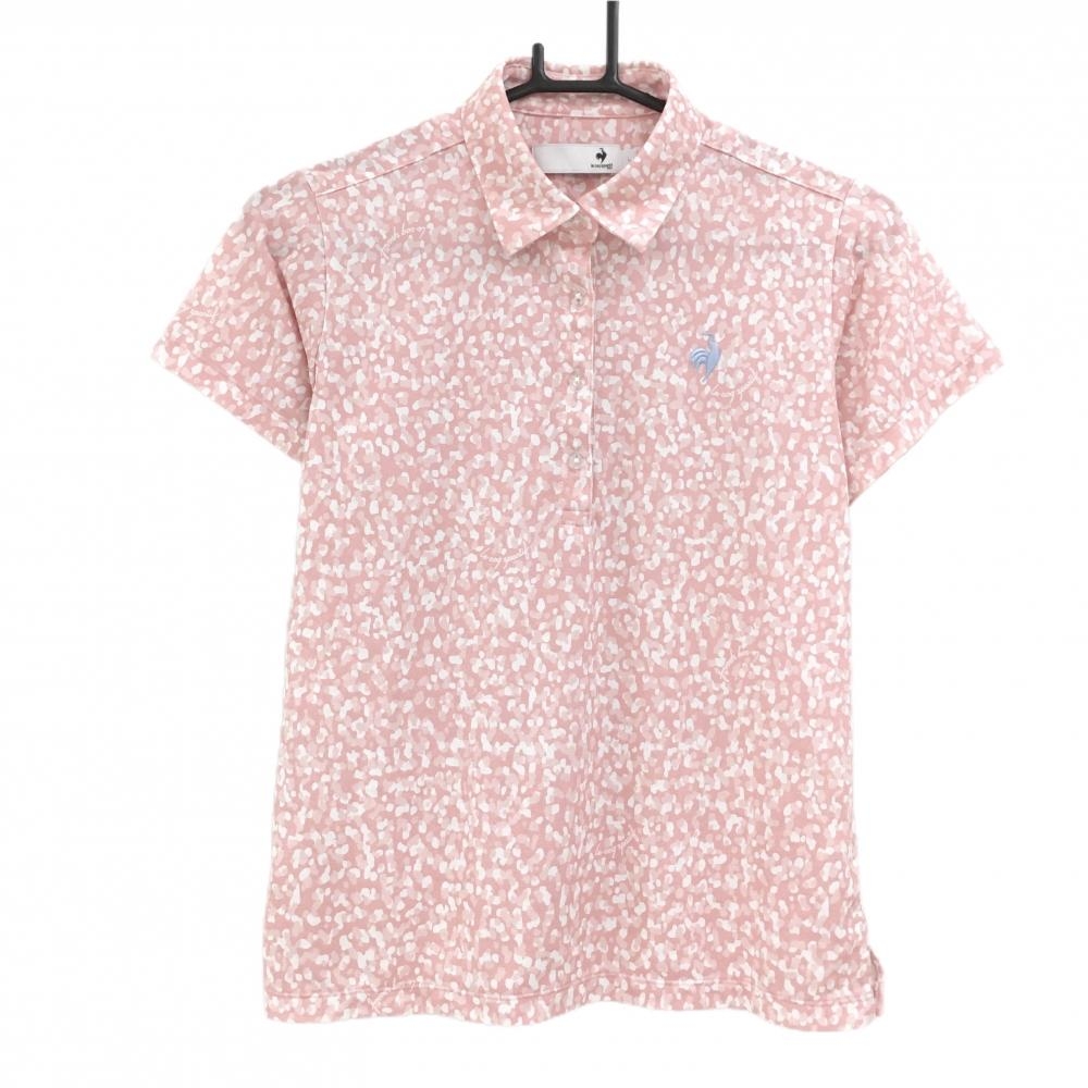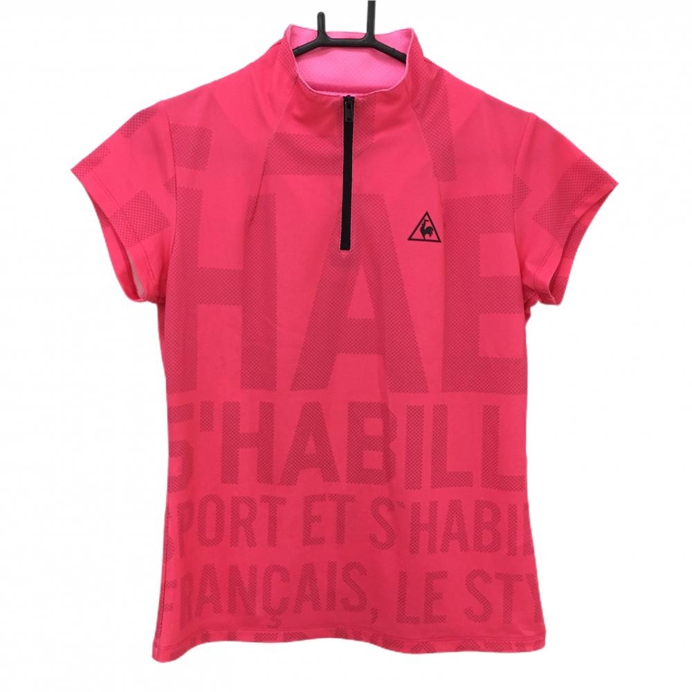 【超美品】ルコックゴルフ 長袖ハイネックシャツ サーモンピンク系×黒 フロントロゴプリント レディース M ゴルフウェア le coq sportif