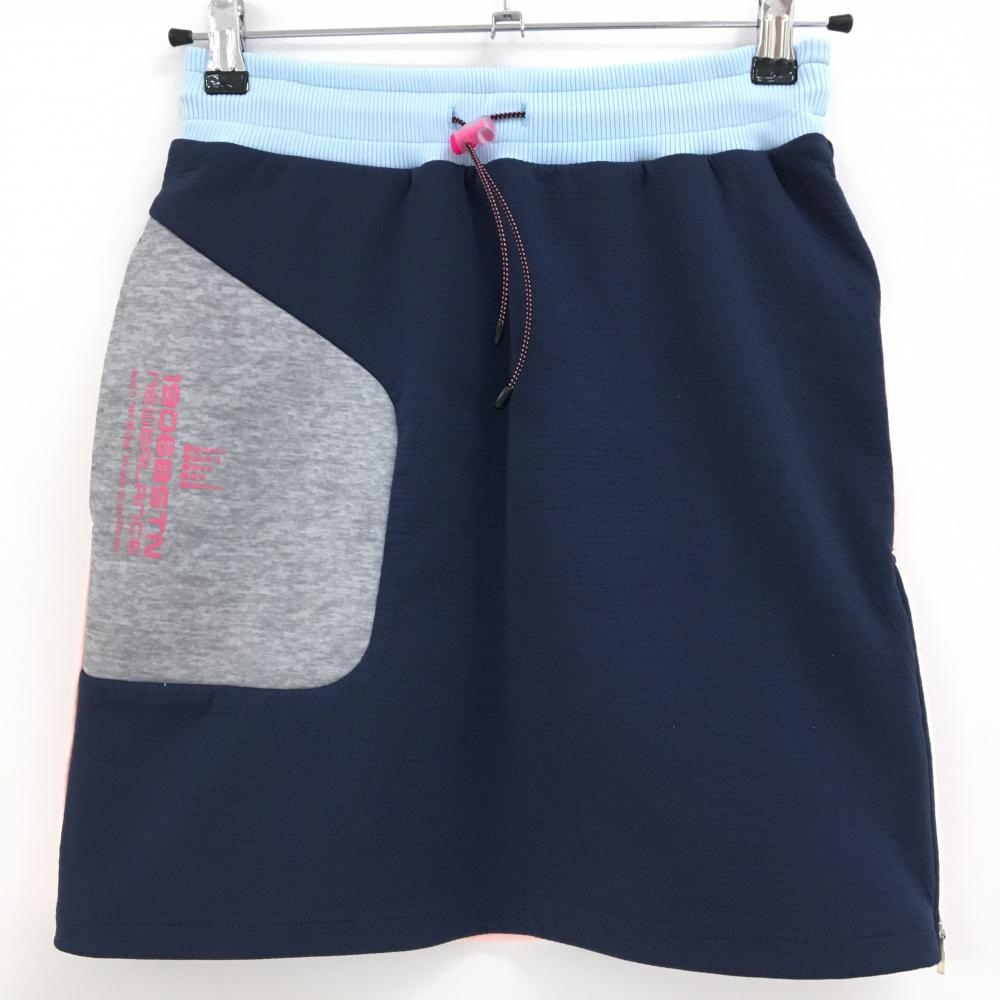 【美品】マスターバニー キュロットスカート ネイビー×ピンク ボーダー 共布リボン レディース 1(M) ゴルフウェア MASTER BUNNY EDITION