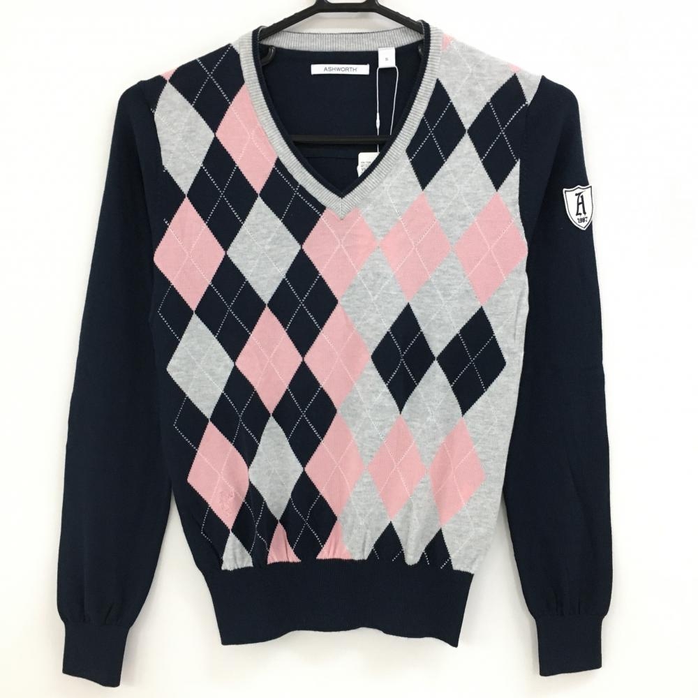 【新品】ゾーイ セーター ピンク×ネイビー イエロー アーガイル ニット レディース 38(M) ゴルフウェア ZOY