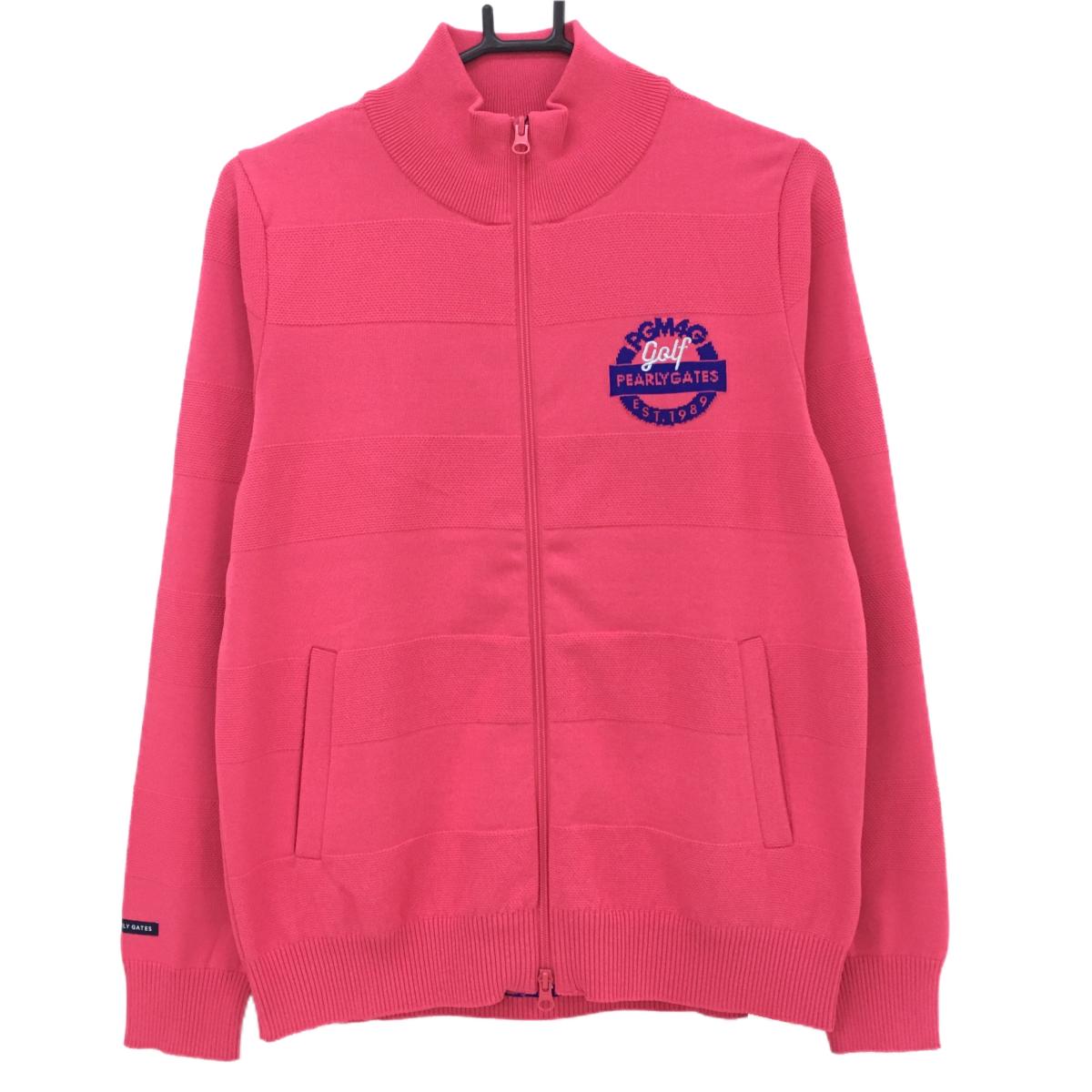 【新品】パーリーゲイツ ニットジャケット ピンク×ネイビー 裏地付き ジップロゴライン レディース 1(M) ゴルフウェア PEARLY GATES
