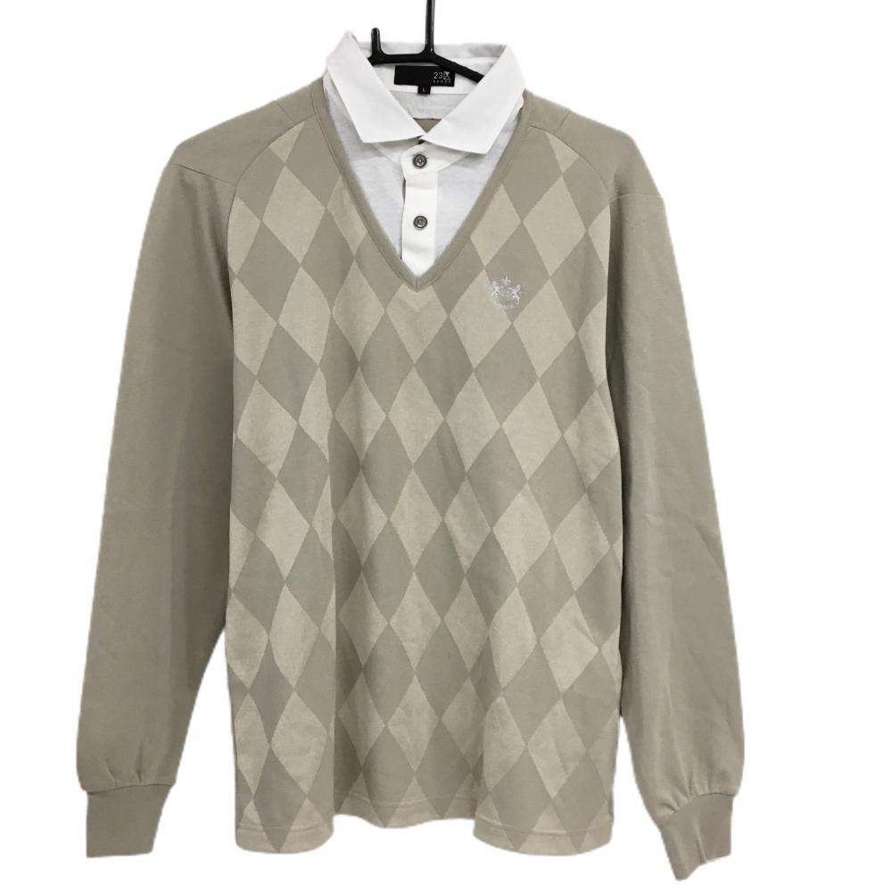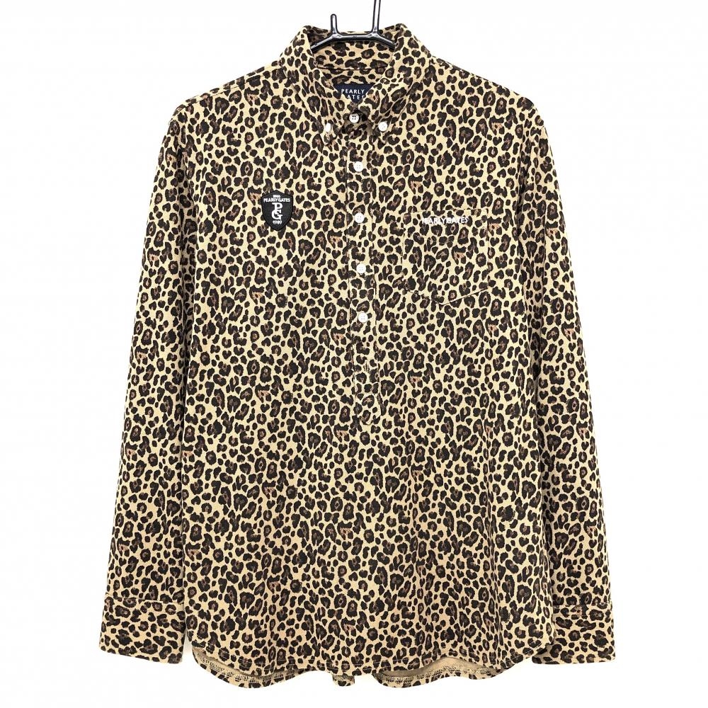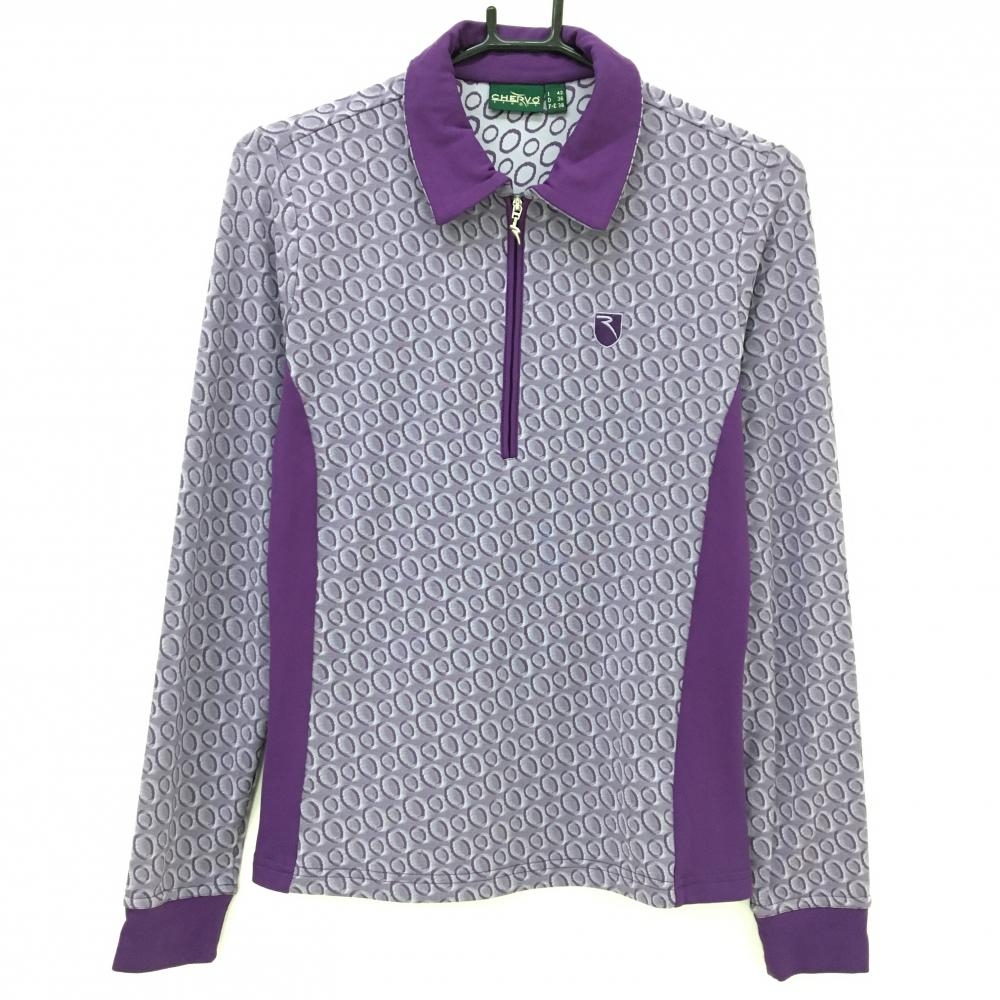 【美品】シェルボ 長袖ポロシャツ アイボリー×ブラウン 襟裏・袖口アニマル柄起毛 裏微起毛 レディース XS ゴルフウェア CHERVO