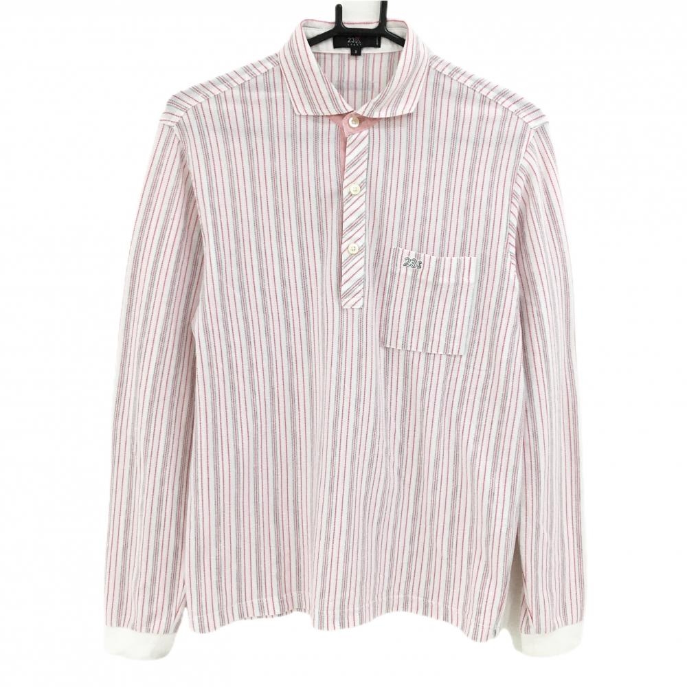 【美品】23区ゴルフ 長袖ポロシャツ ライトグレー 襟ボーダー メンズ L ゴルフウェア 23区