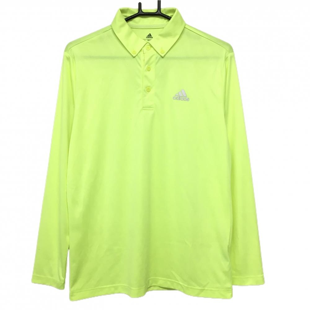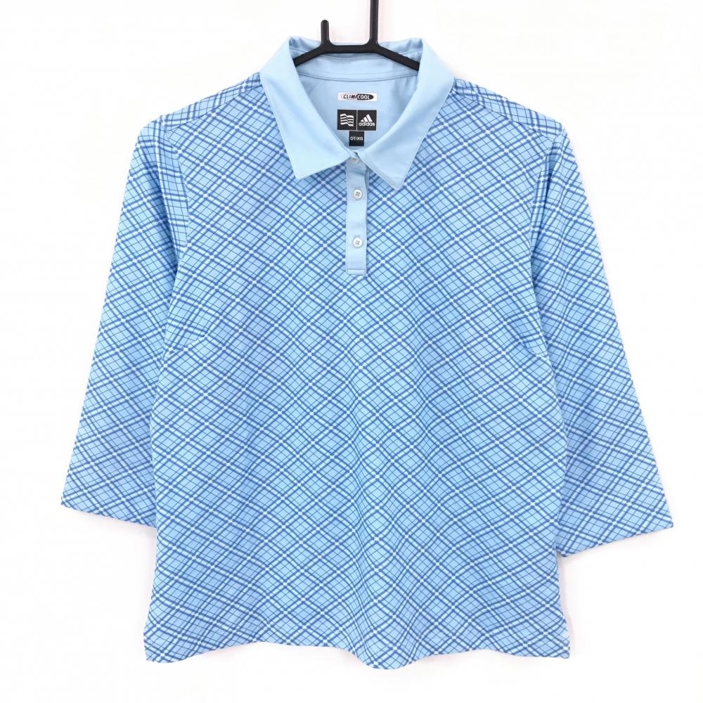 【美品】アディダス 長袖ポロシャツ ブルー×マルチ フロント斜めライン ボタンダウン ロゴ刺しゅう メンズ L/G ゴルフウェア adidas