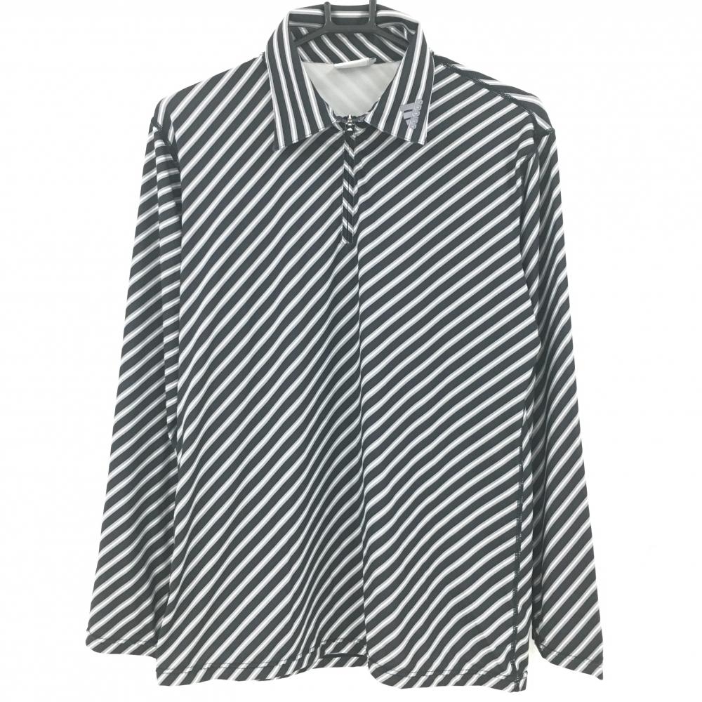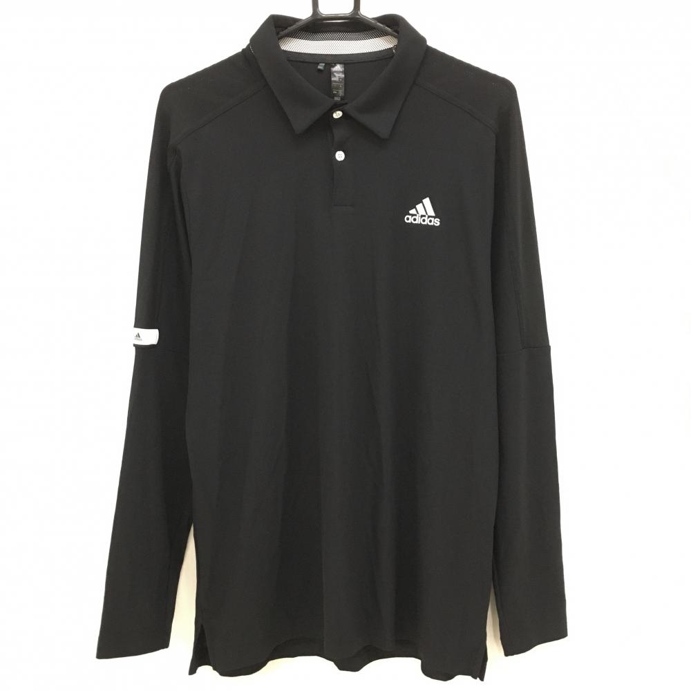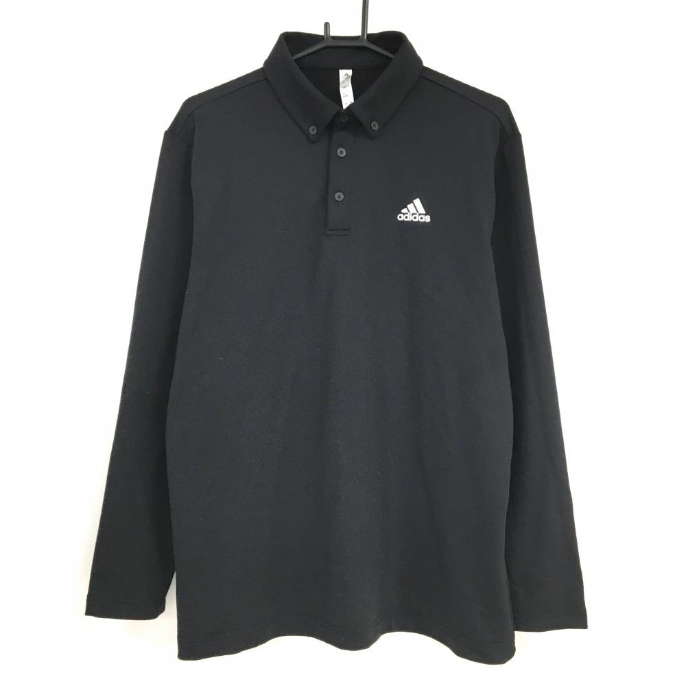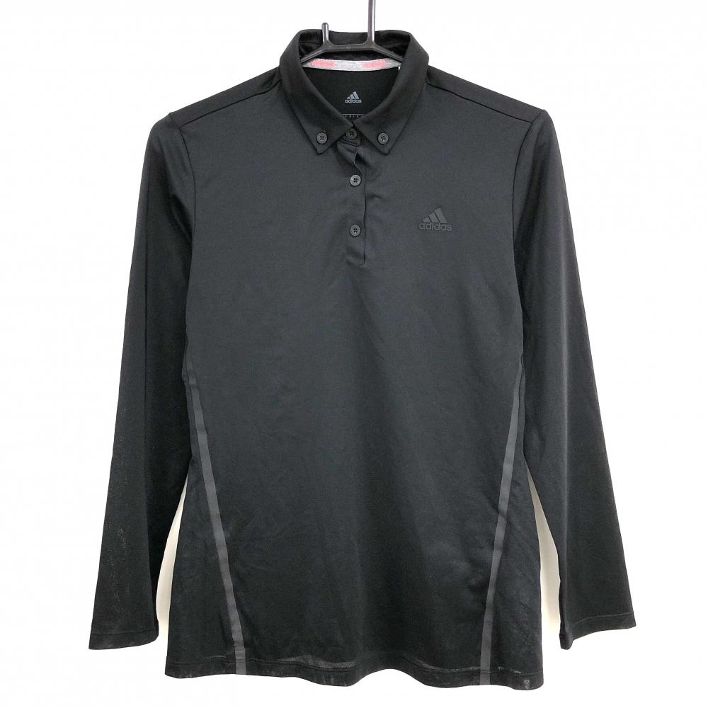【超美品】アディダス 長袖ポロシャツ 黒×グレー ボタンダウン 袖ロゴプリント レディース L ゴルフウェア adidas