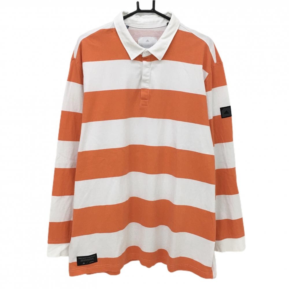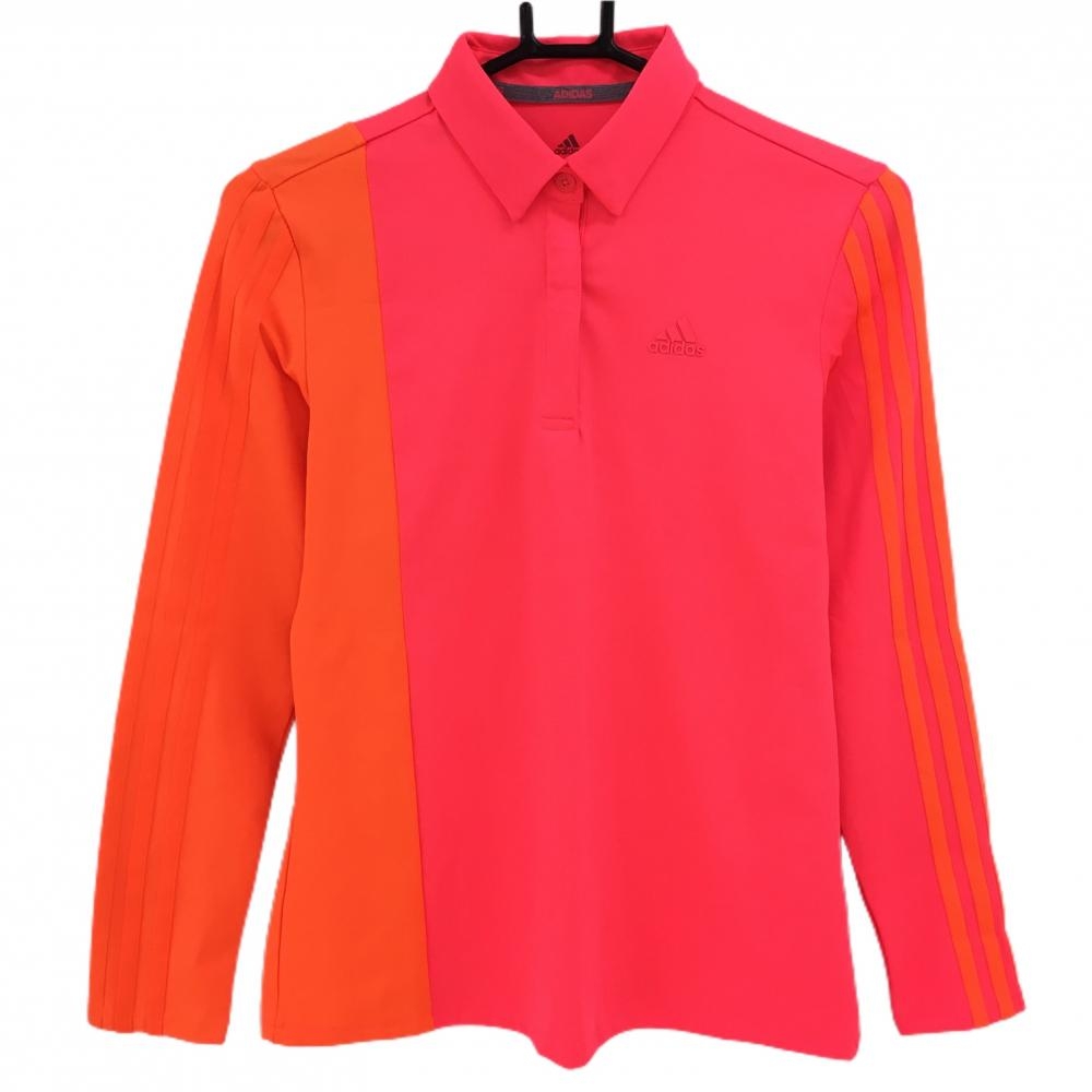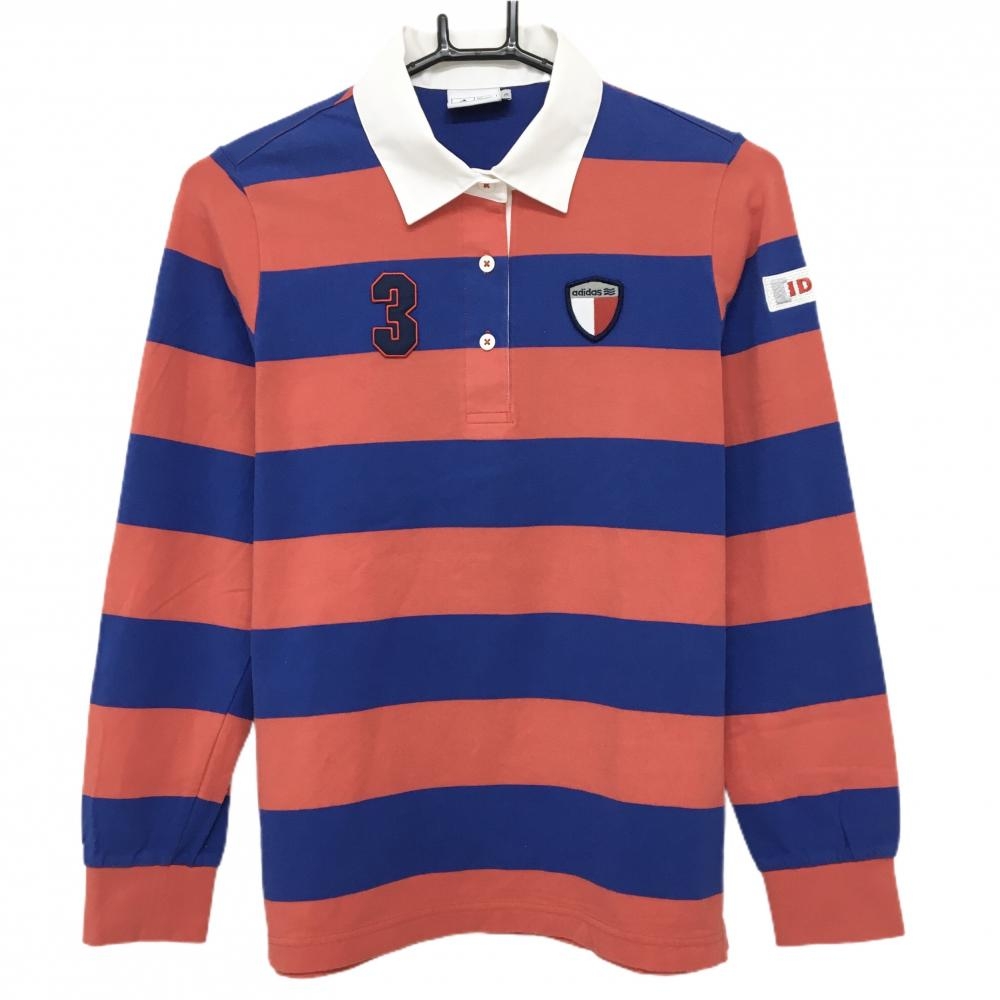 【超美品】アディダス 長袖ポロシャツ オレンジレッド×ブルー ロゴプリント climachill メンズ L/G ゴルフウェア adidas